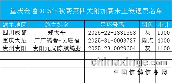 重庆金通2025年秋赛第四关附加赛未上笼退费名单