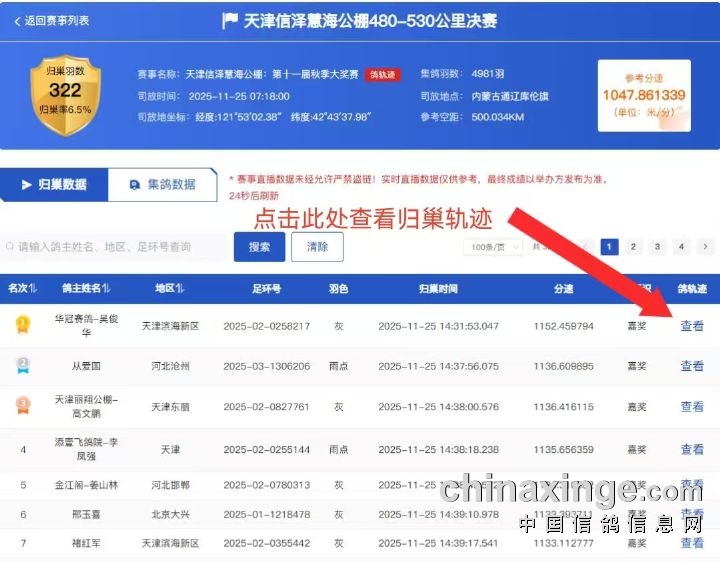 提示:如果此页面是训放清单,要想快速查询鸽环号,请按