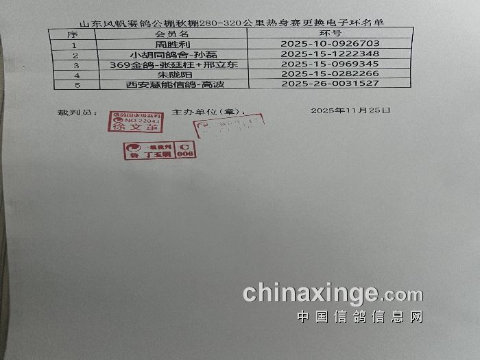 山东风帆赛鸽公棚(秋棚)2025年第二届获奖鸽照片