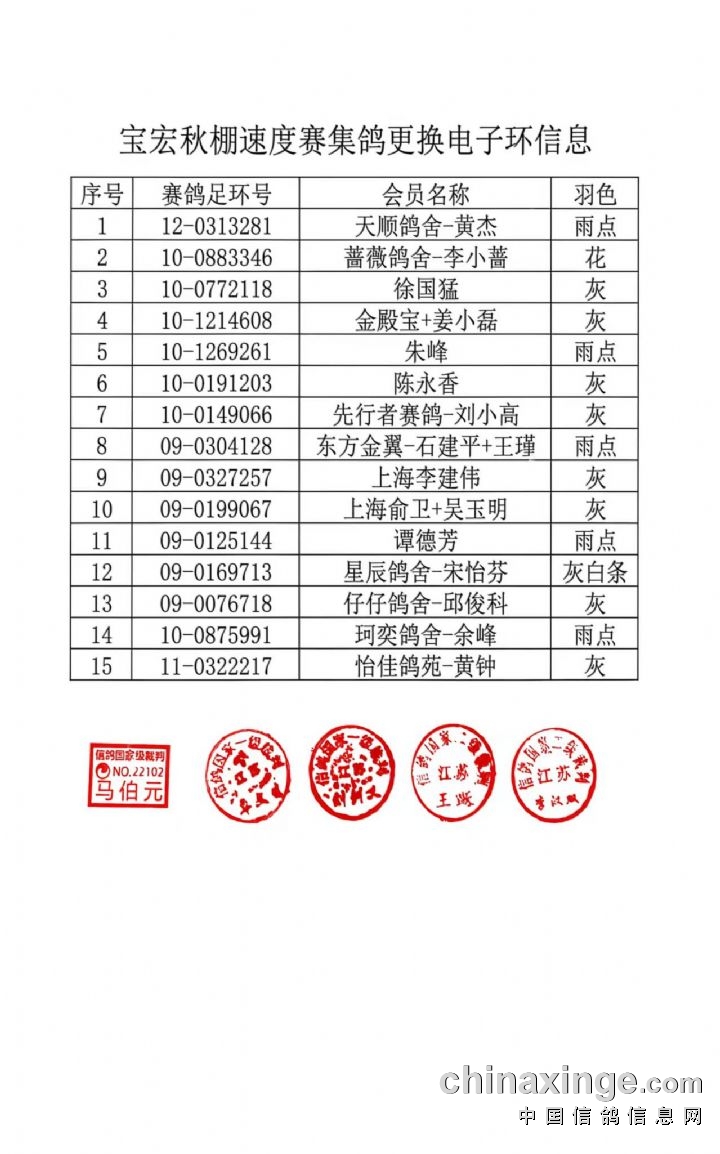• 江苏宝宏秋棚速度赛集鸽清单(按集鸽顺序) (2025-11-25 20:37:09)