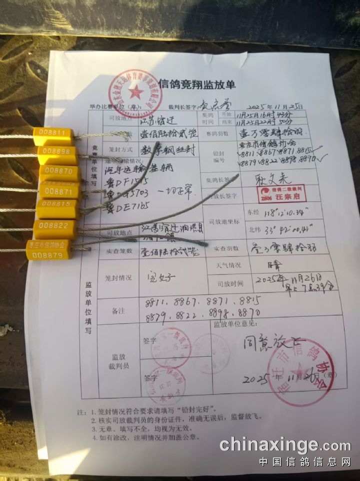 金翅天运(小秋棚)490-530公里第三关决赛开笼公告及扫描链接