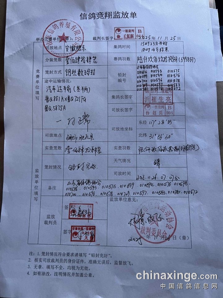 • 山东胜道公棚2025年第二关集鸽数据(按顺序) (2025-11-25 18:41:57)
