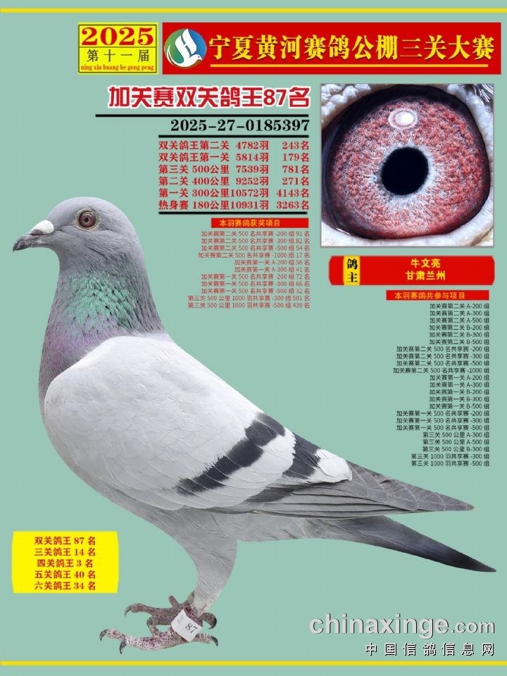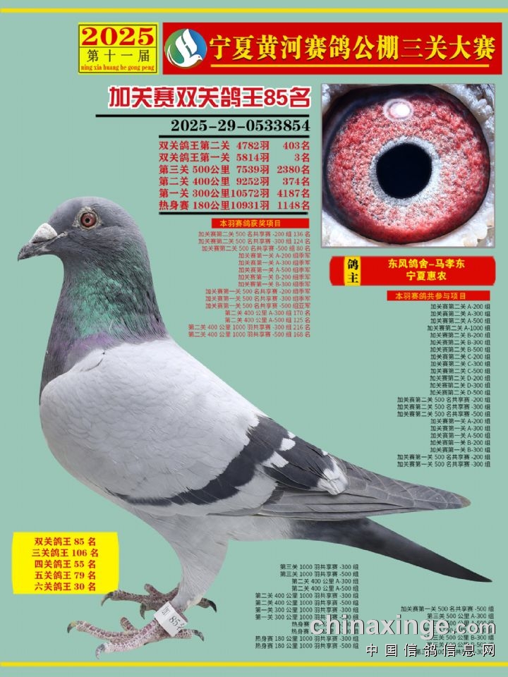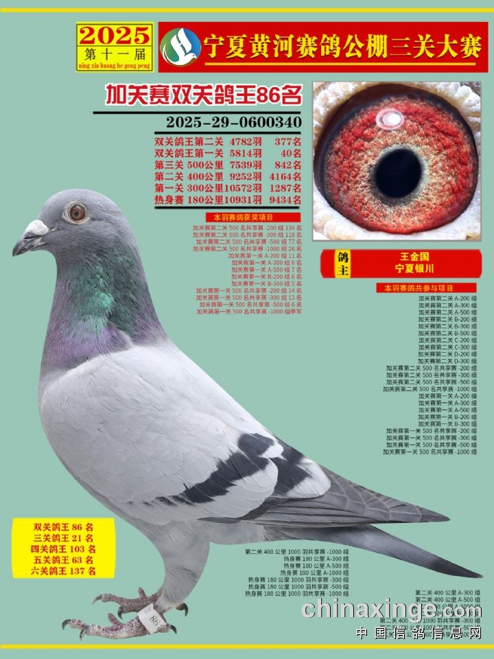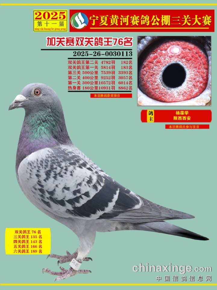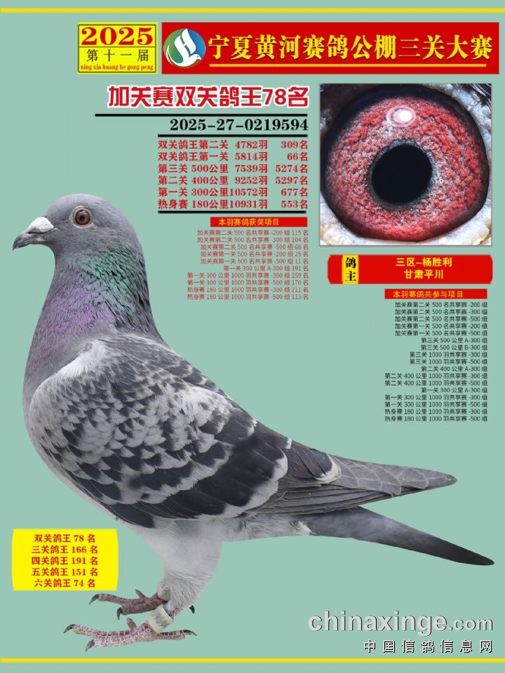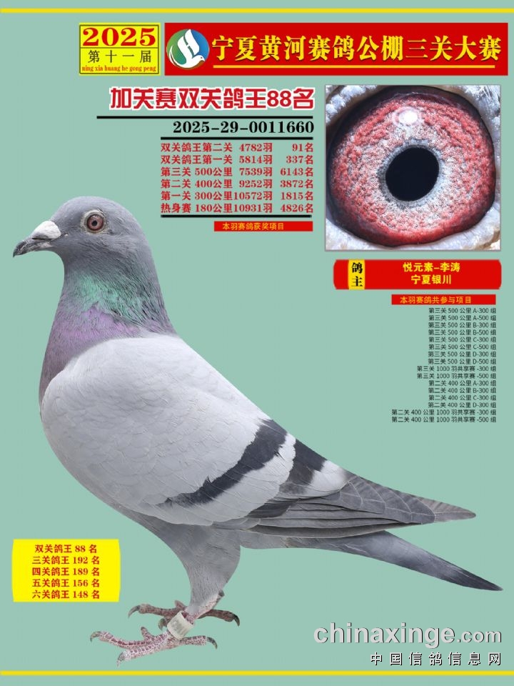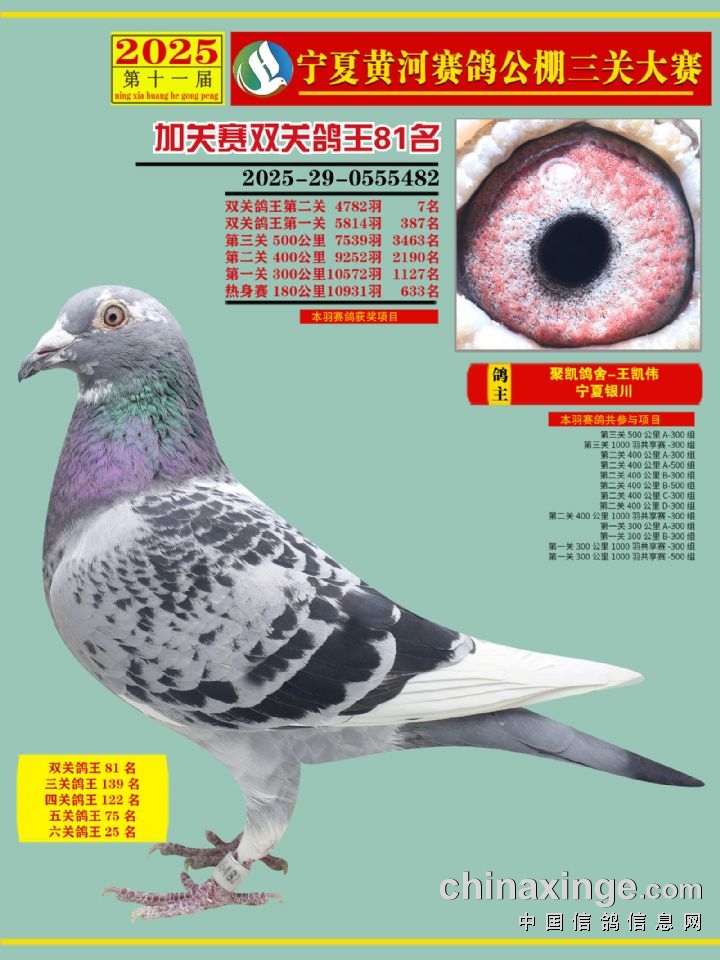 • 宁夏黄河赛鸽公棚双关鸽王加关赛181-195名赏析 (2025-11-26 9:39:42)