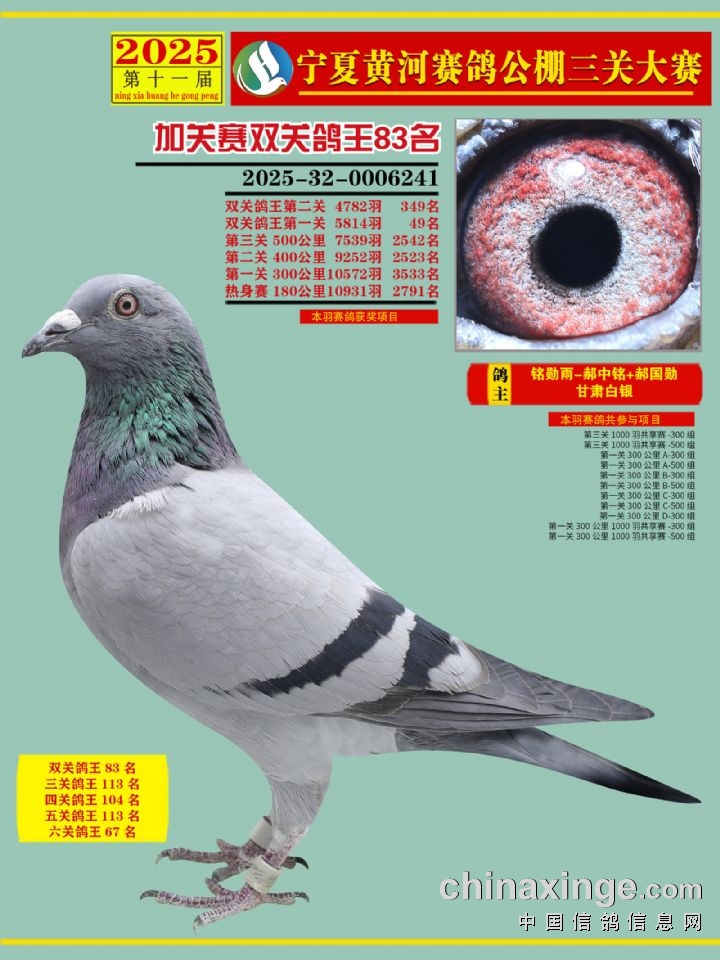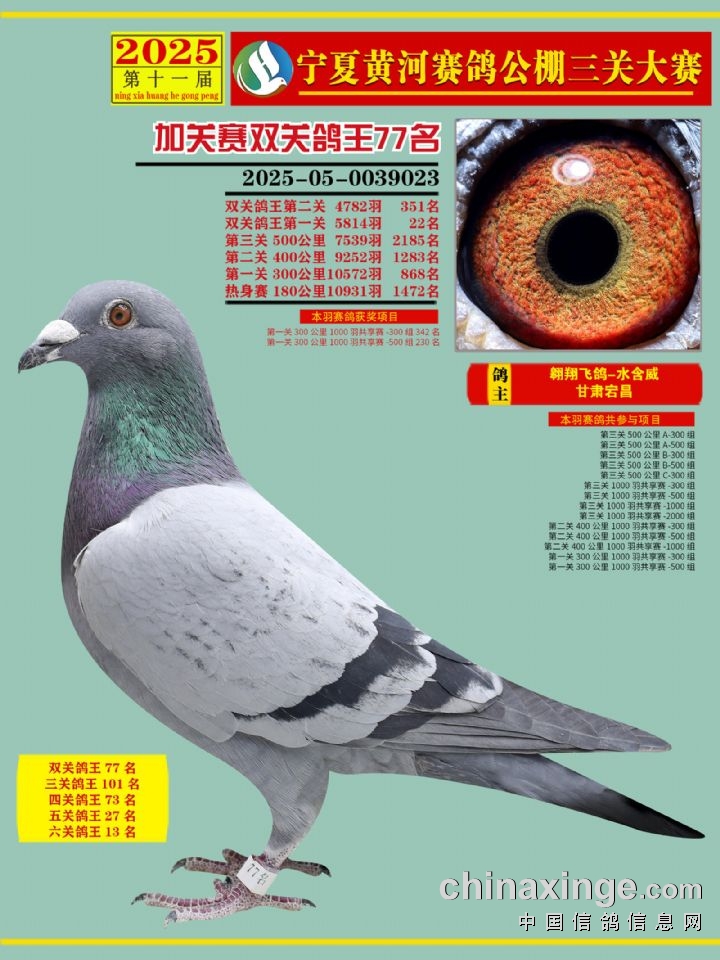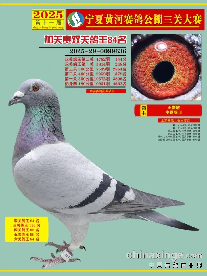 • 宁夏黄河赛鸽公棚双关鸽王加关赛91-105名赏析 (2025-11-26 10:25:17)