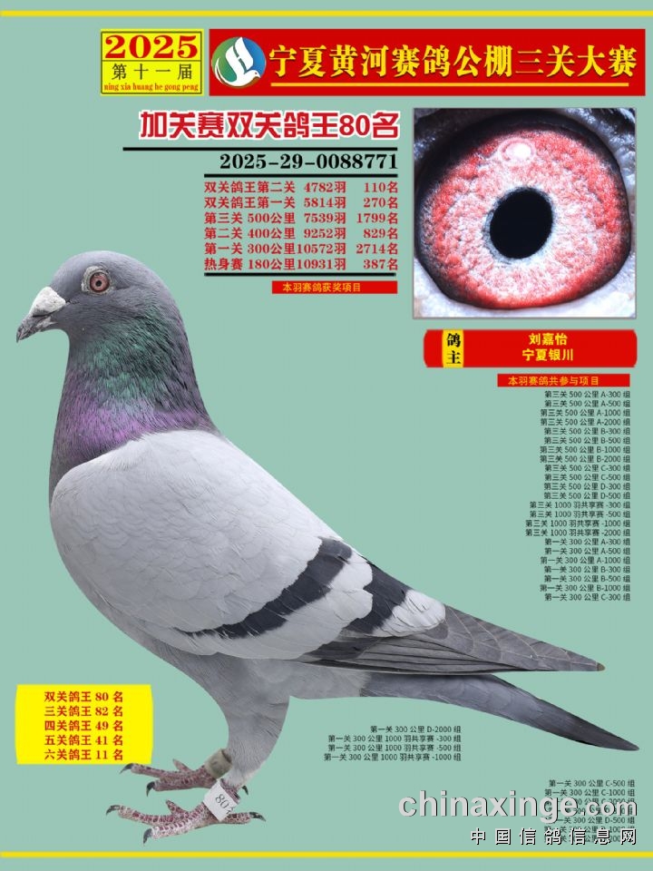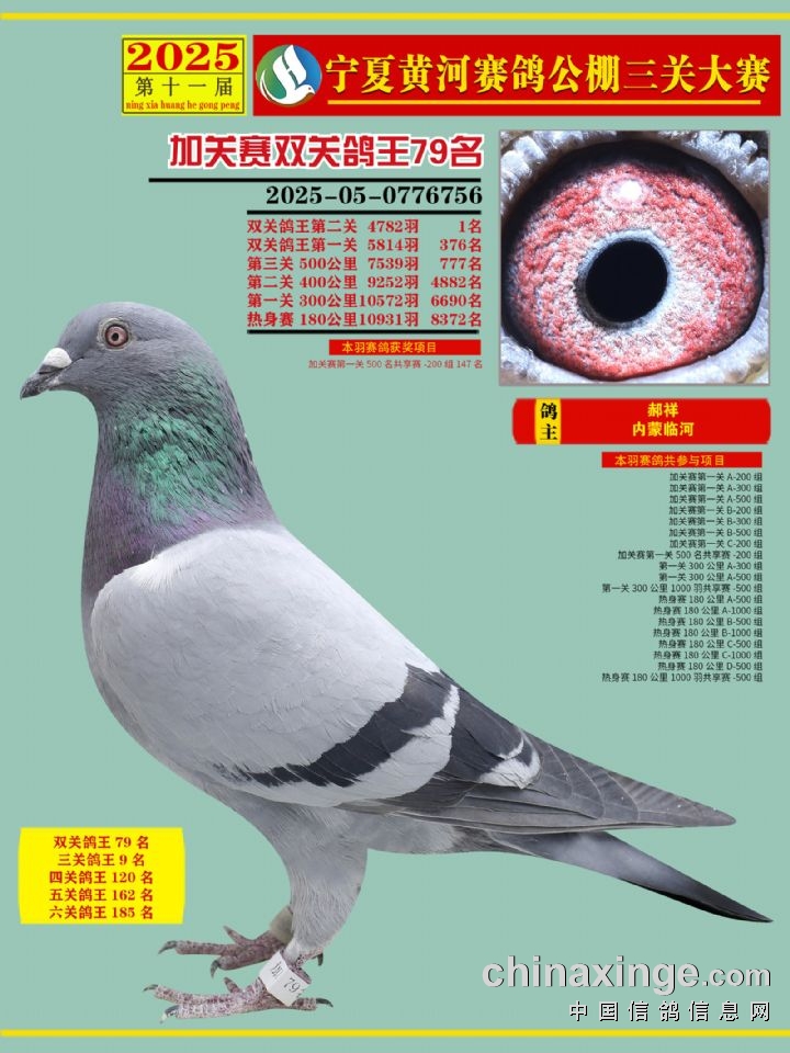 • 宁夏黄河赛鸽公棚双关鸽王加关赛61-75名赏析 (2025-11-26 10:35:55)