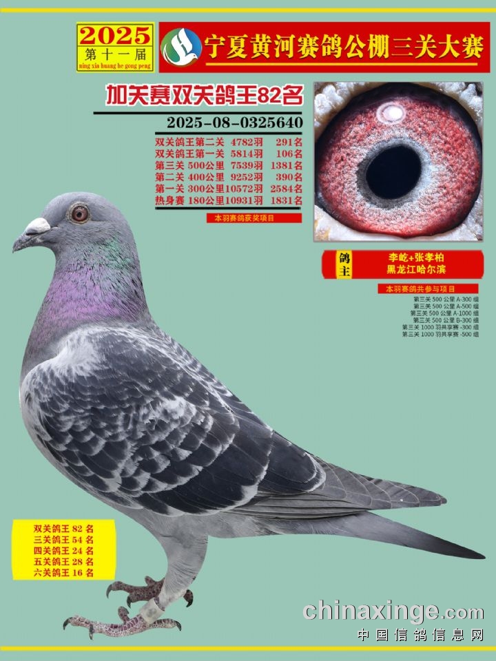 • 宁夏黄河赛鸽公棚双关鸽王加关赛151-165名赏析 (2025-11-26 9:57:57)