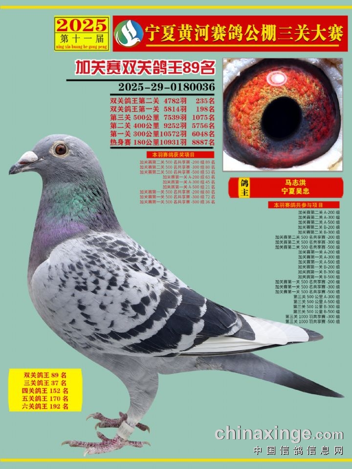 • 宁夏黄河赛鸽公棚双关鸽王加关赛166-180名赏析 (2025-11-26 9:46:21)