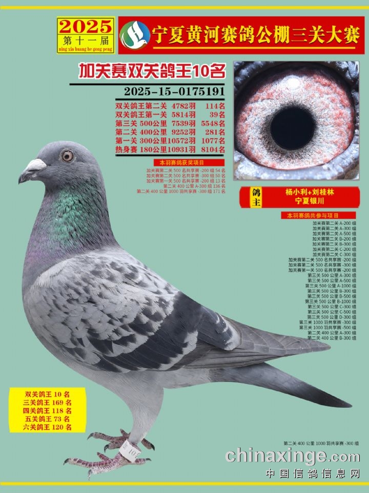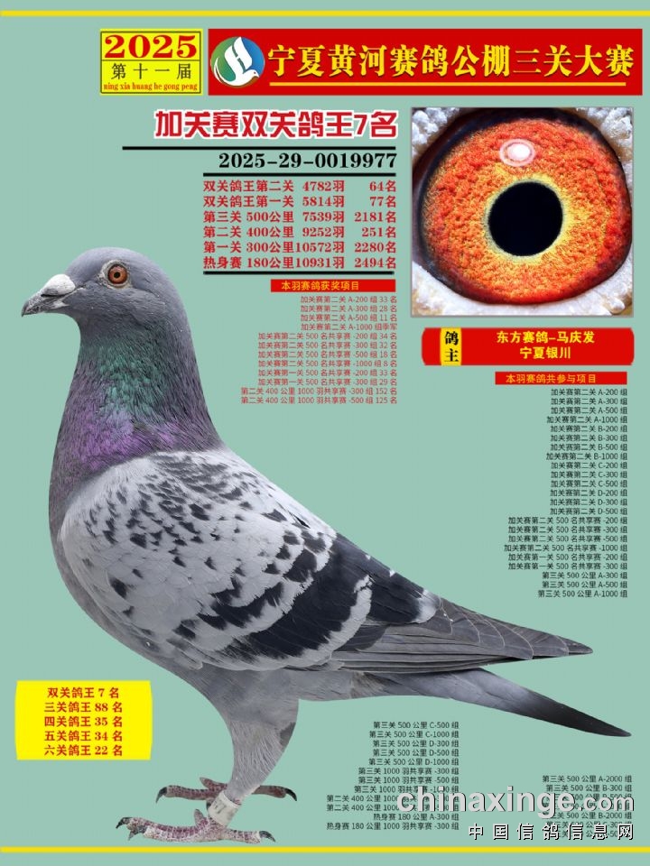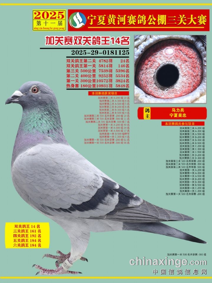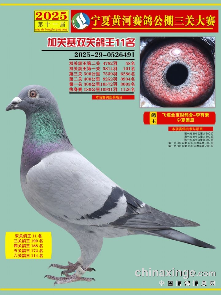 • 宁夏黄河赛鸽公棚双关鸽王加关赛16-30名赏析 (2025-11-26 10:58:08)