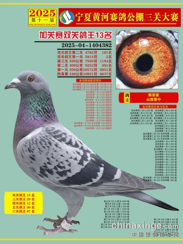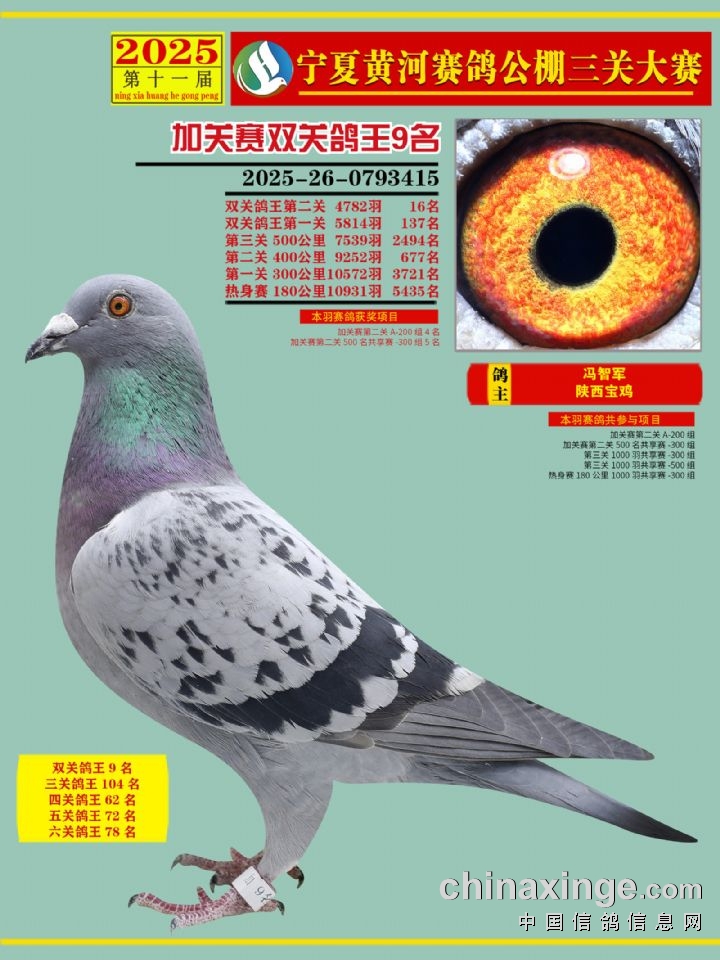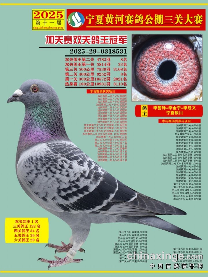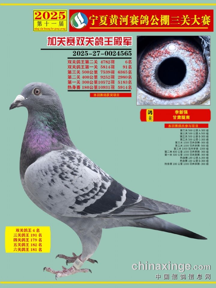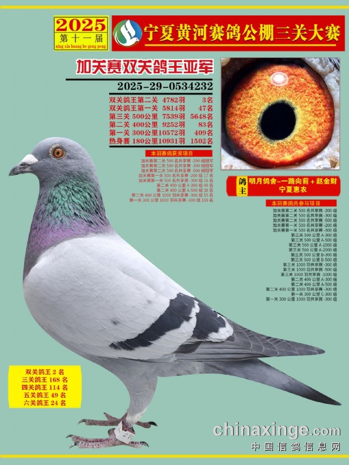 • 宁夏黄河赛鸽公棚双关鸽王加关赛16-30名赏析 (2025-11-26 10:58:08)