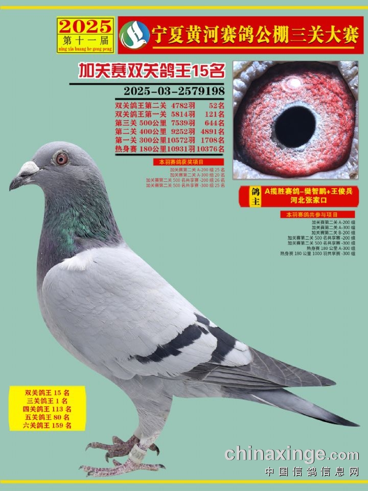 宁夏黄河赛鸽公棚双关鸽王加关赛1-15名赏析