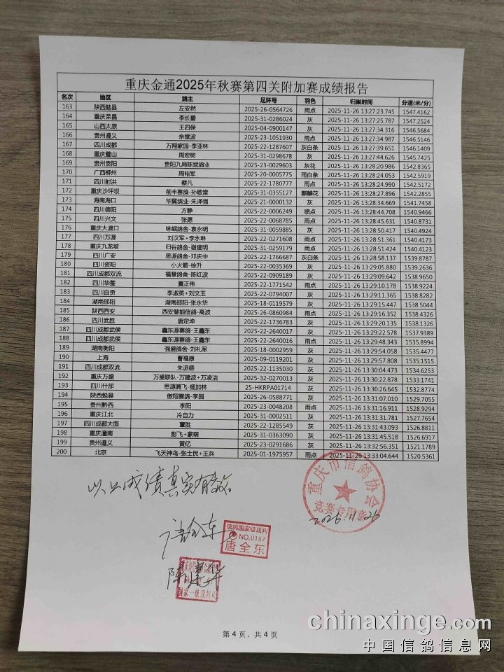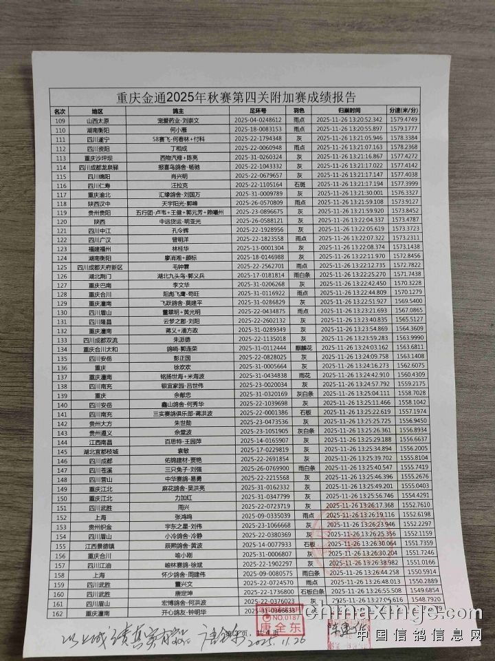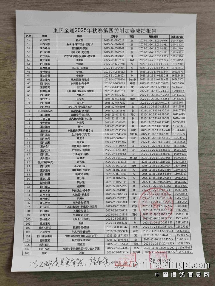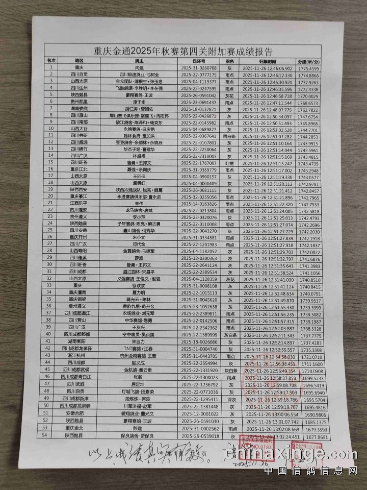 • 重庆金通2025年秋赛第四关附加赛开笼通知 (2025-11-26 8:30:37)