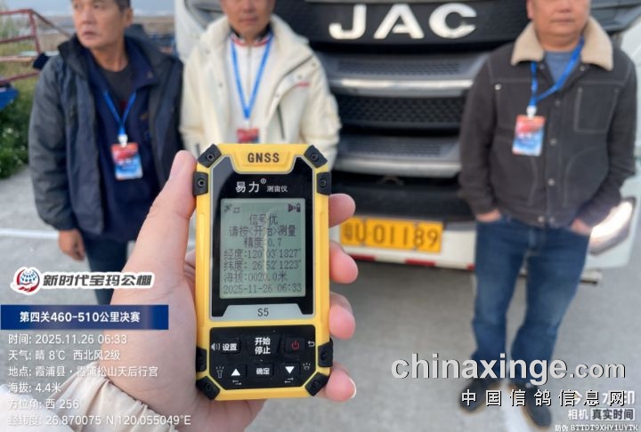 集鸽车辆到达司放地,工作人员与裁判对司放地进行定位确认