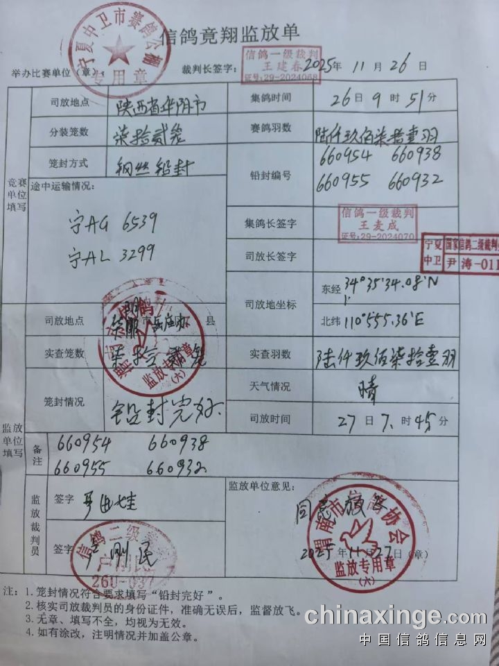 宁夏中卫赛鸽公棚520公里第三关决赛拍卖手册