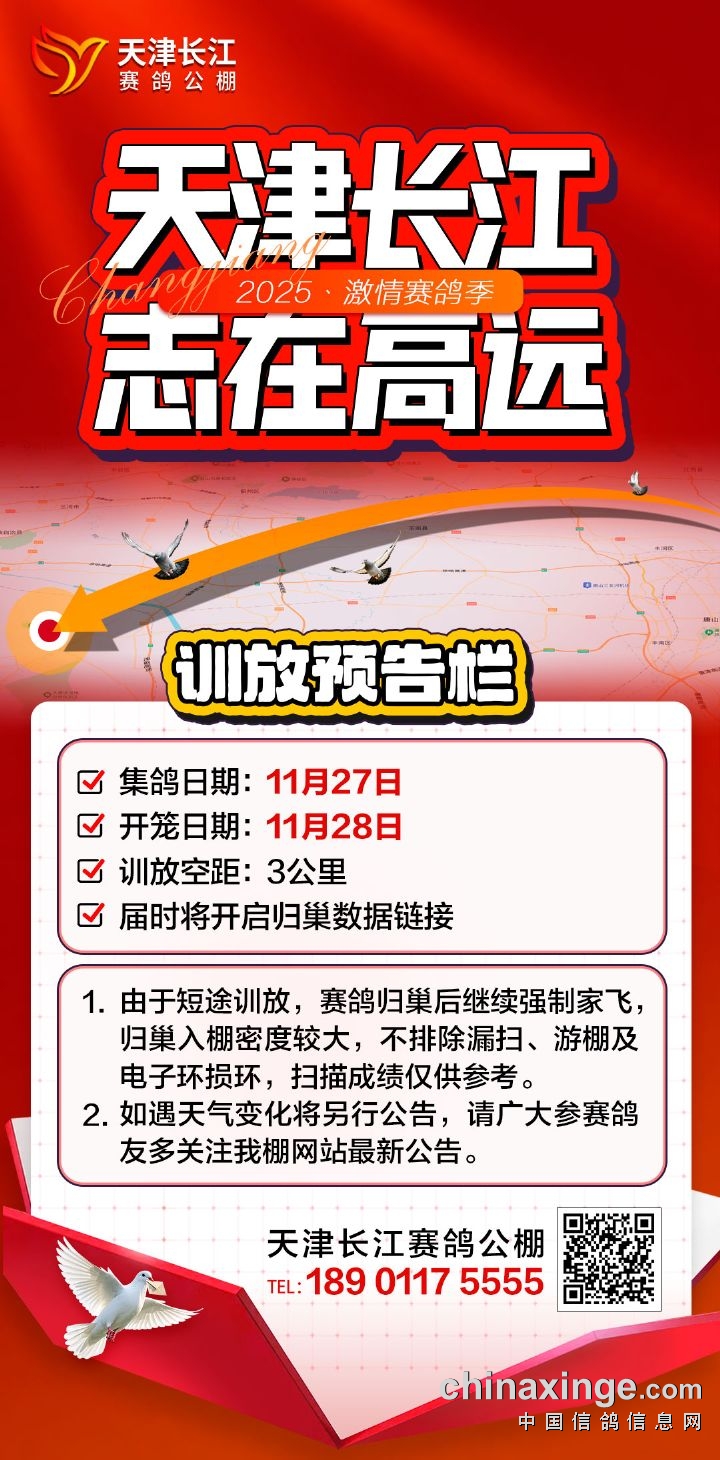 • 天津长江赛鸽公棚加奖通知 (2025-11-15 22:06:02)