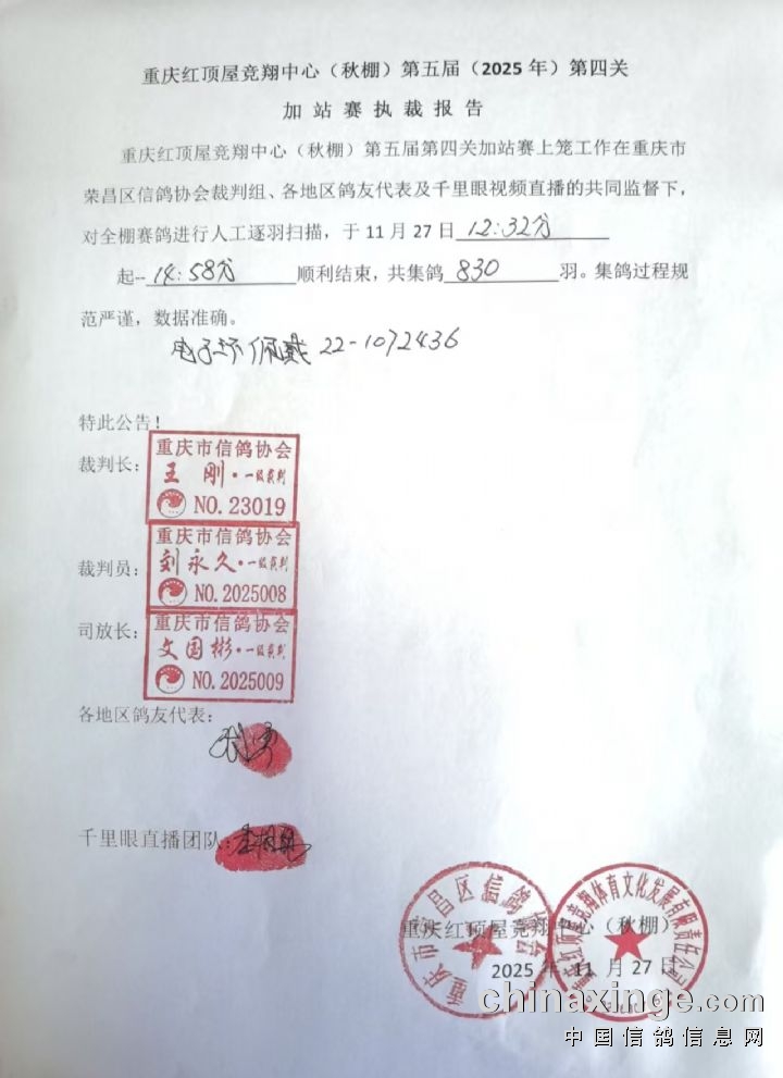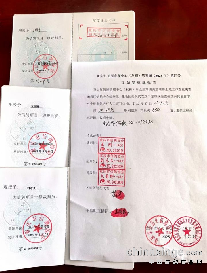 重庆红顶屋竞翔中心(秋)25年加站赛执裁报告