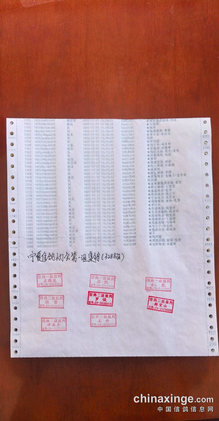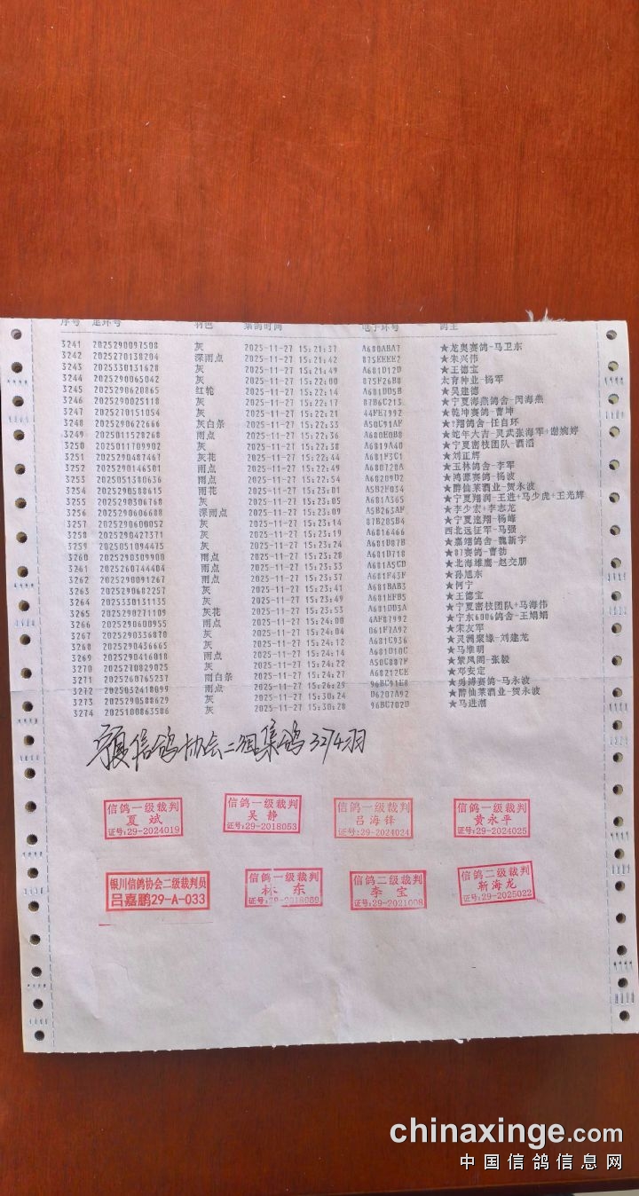 • 宁夏玺恒翔公棚480-520公里集鸽明细(按顺序) (2025-11-27 15:47:30)