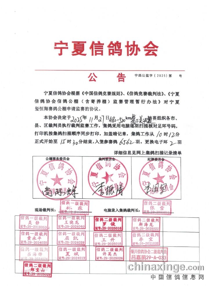 • 宁夏信鸽协会公告 (2025-11-27 16:00:54)