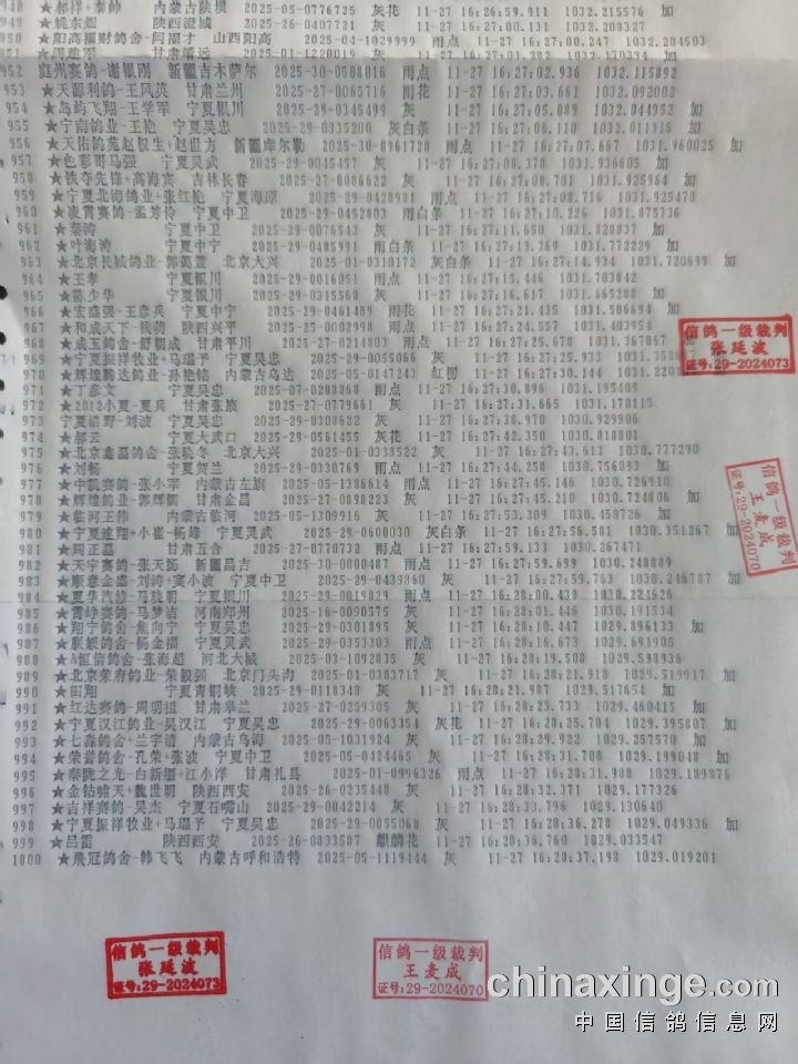 宁夏中卫赛鸽公棚双关鸽王加站赛第二关归巢鸽明细按鸽主(三日汇总)