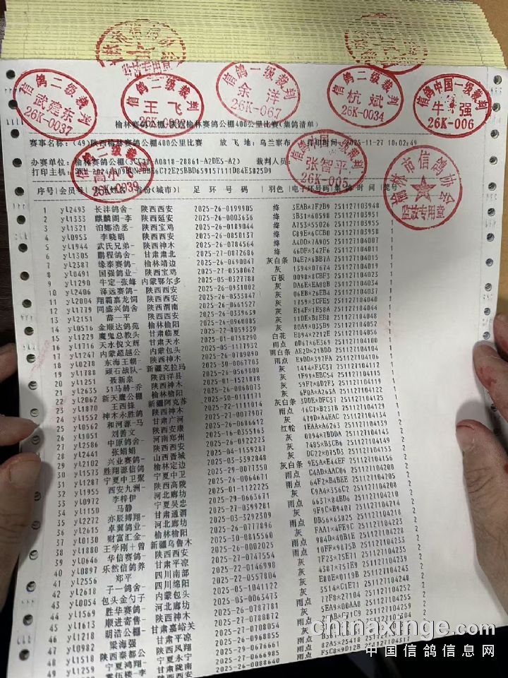 • 陕西榆林赛鸽公棚400公里比赛集鸽清单(按时间排序) (2025-11-27 16:57:51)