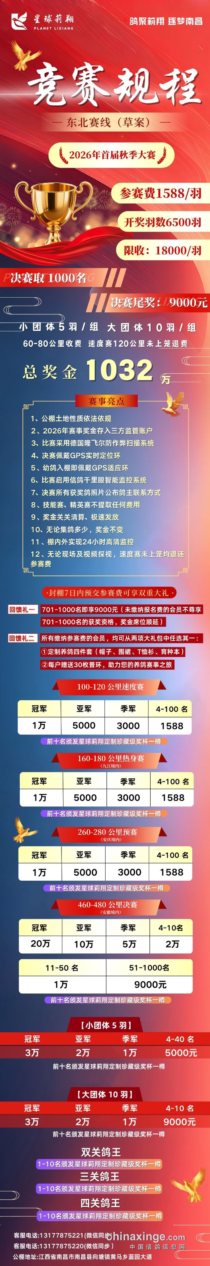 江西星球莉翔赛鸽公棚2026年首届秋赛规程