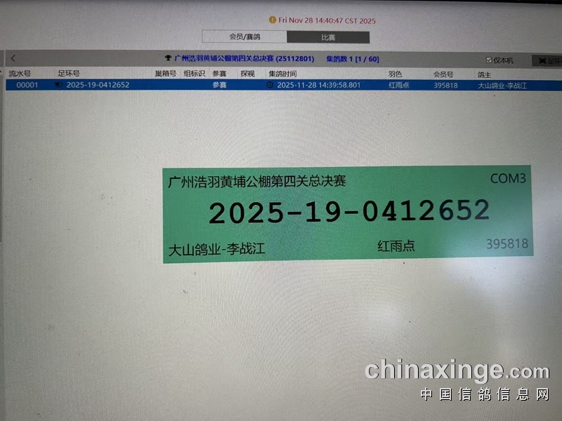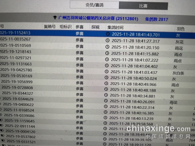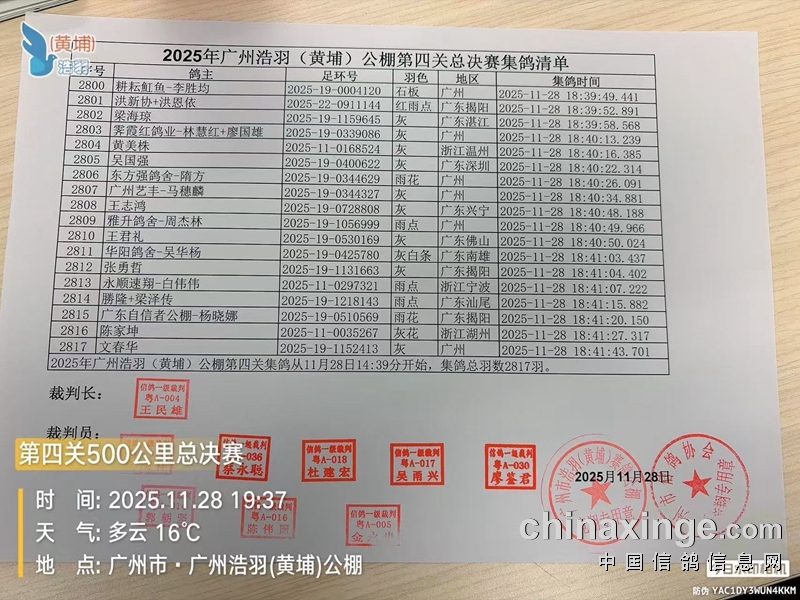 广州浩羽(黄埔)公棚第四关总决赛集鸽扫描清单(2817羽)