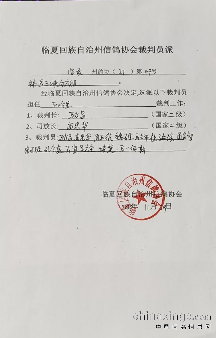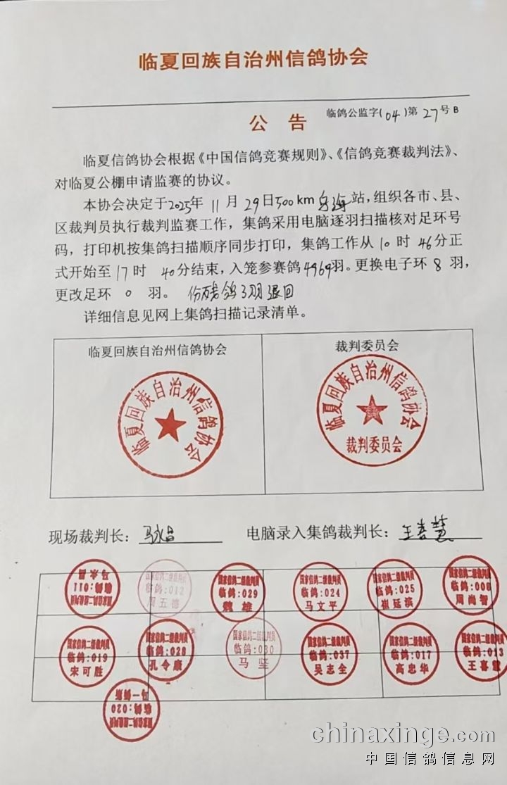 甘肃锦园三峡赛鸽公棚500公里决赛奖金领取通知