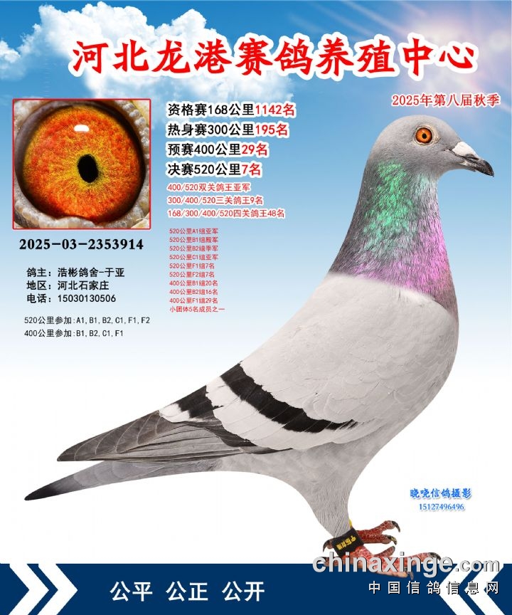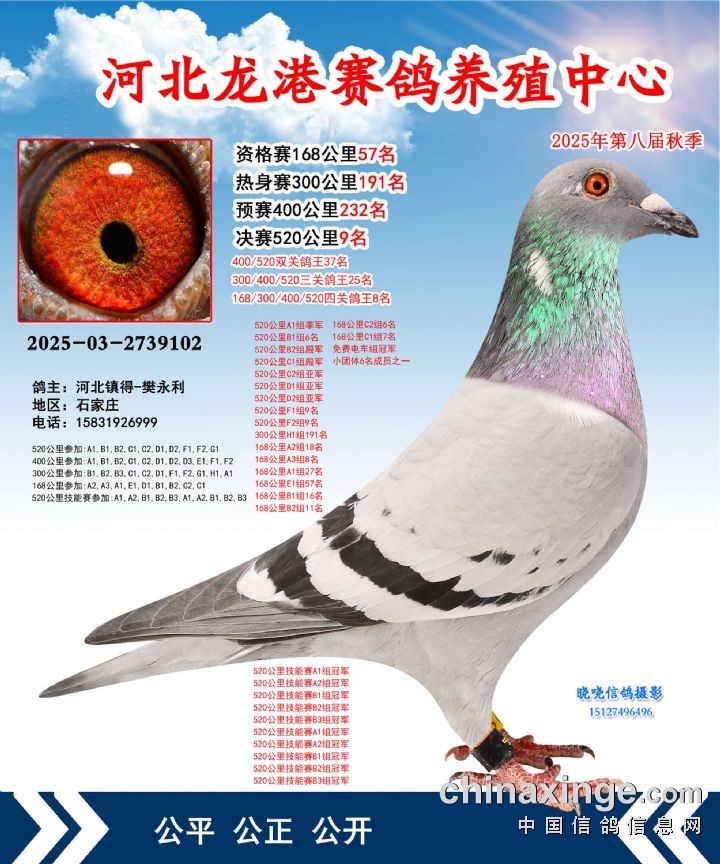 河北龙港赛鸽养殖中心获奖鸽1-15名照片