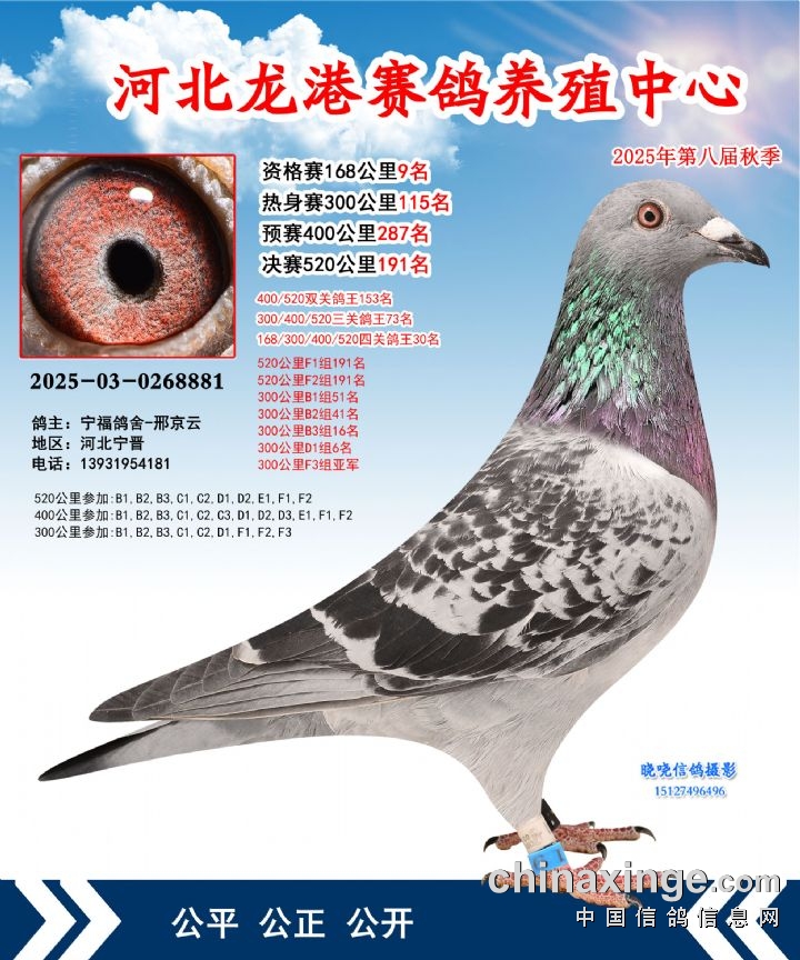河北龙港赛鸽养殖中心获奖鸽181-195名照片