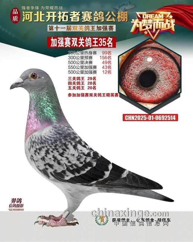 河北开拓者赛鸽寄养(秋棚)加强赛550、500双关鸽王拍卖手册