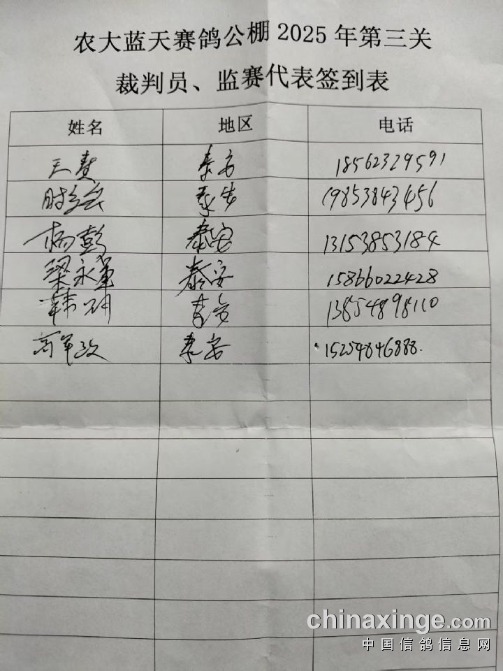 农大蓝天赛鸽公棚2026年收鸽清单(更新中)