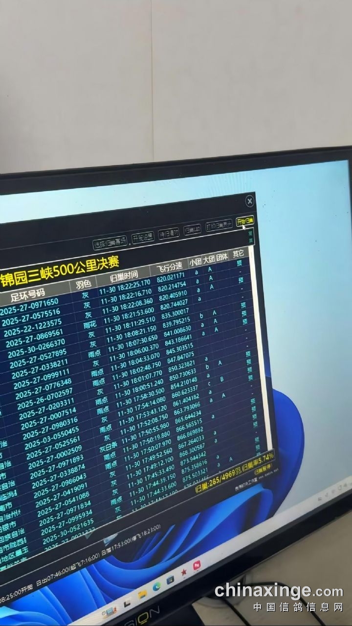 甘肃锦园三峡赛鸽公棚迟归鸽名单
