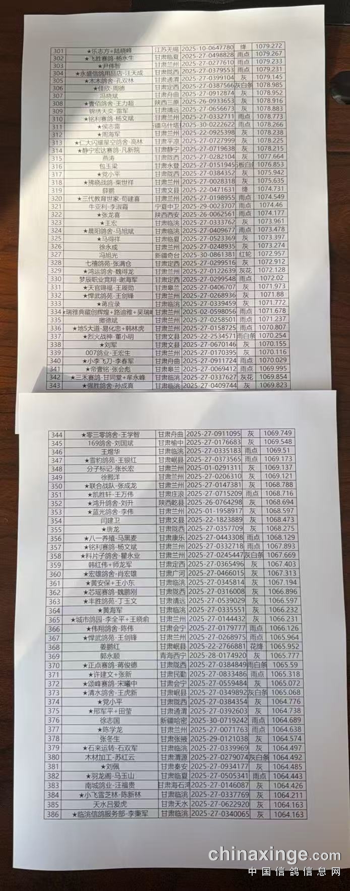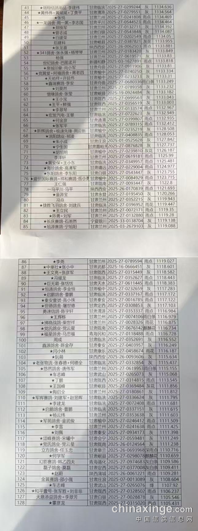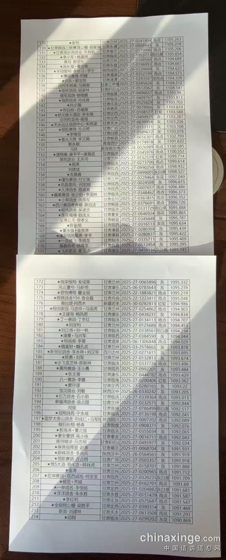 甘肃麒麟秋棚2025年500公里决赛获奖鸽鉴赏