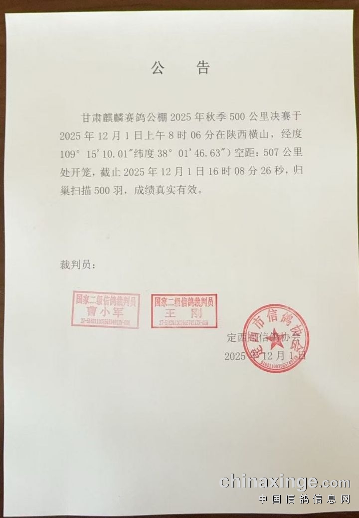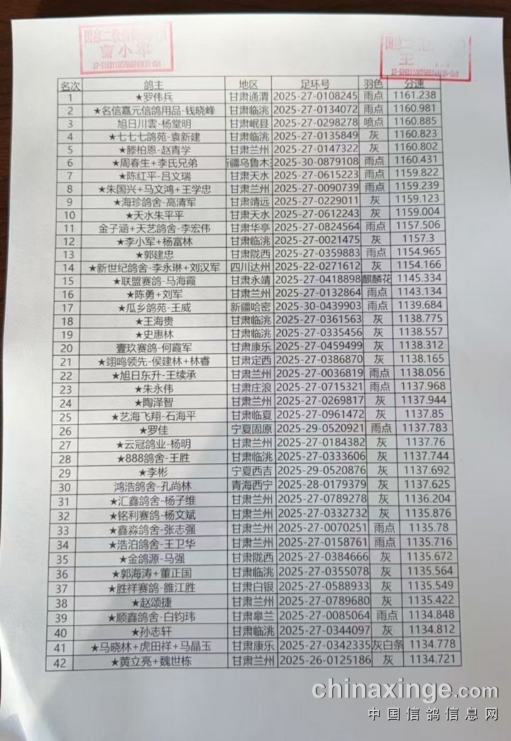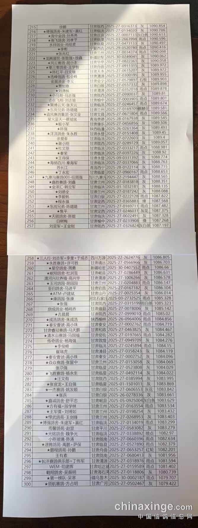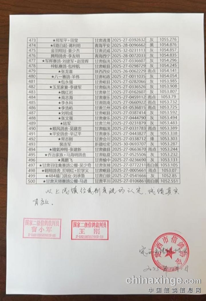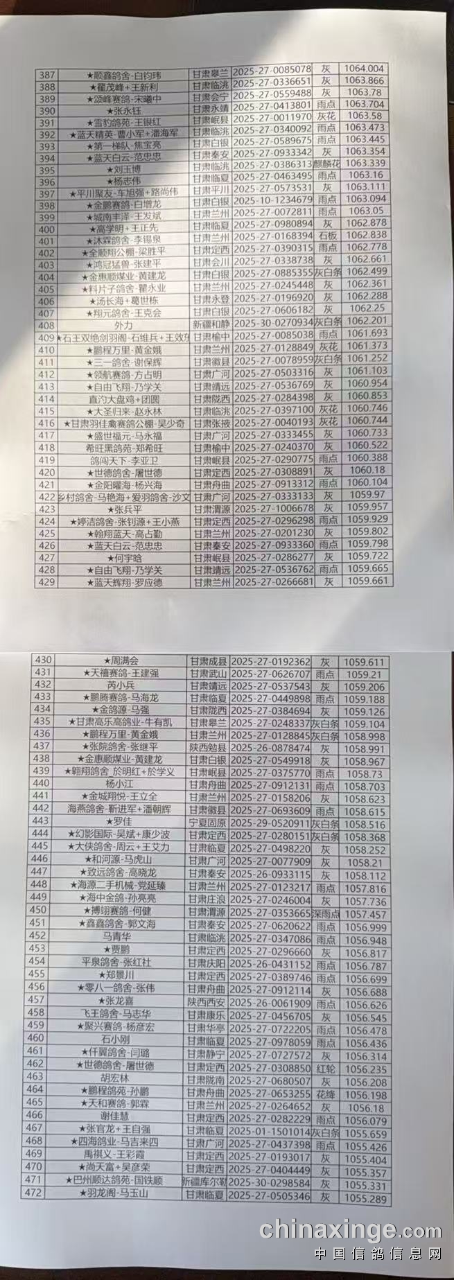 甘肃麒麟秋棚2025年500公里决赛获奖鸽鉴赏