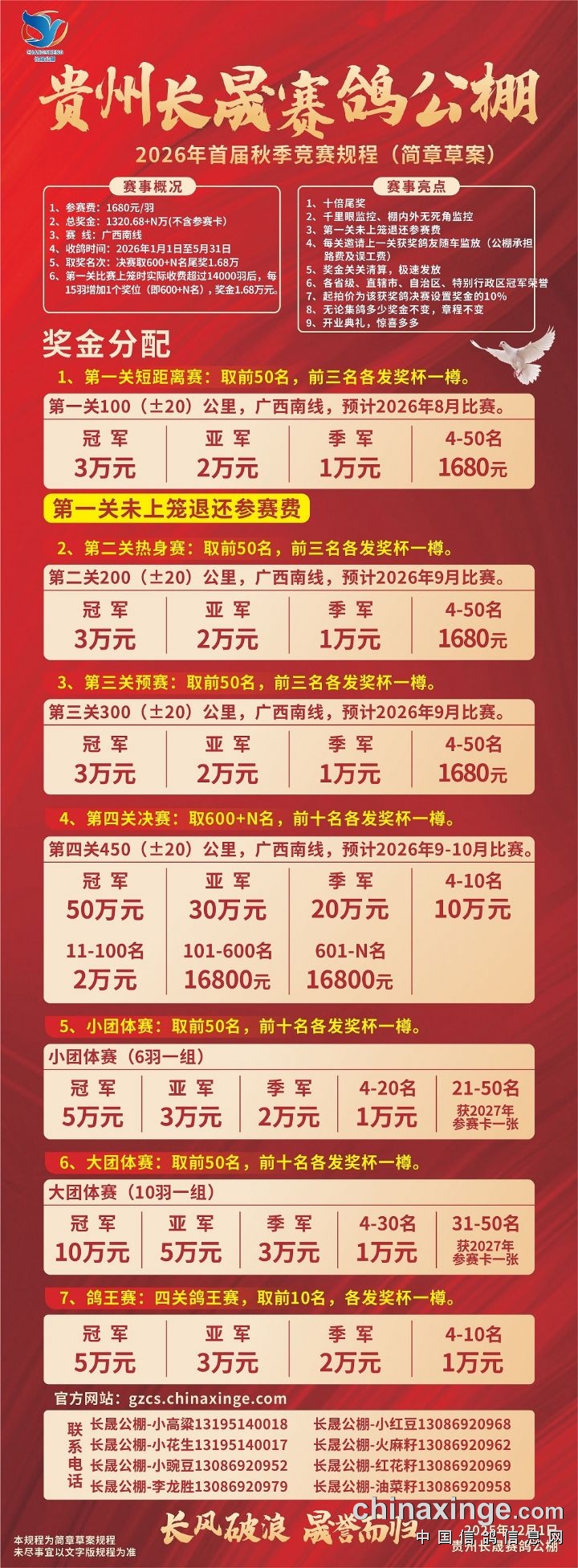 2026年首届贵州长晟赛鸽公棚预定会员名单