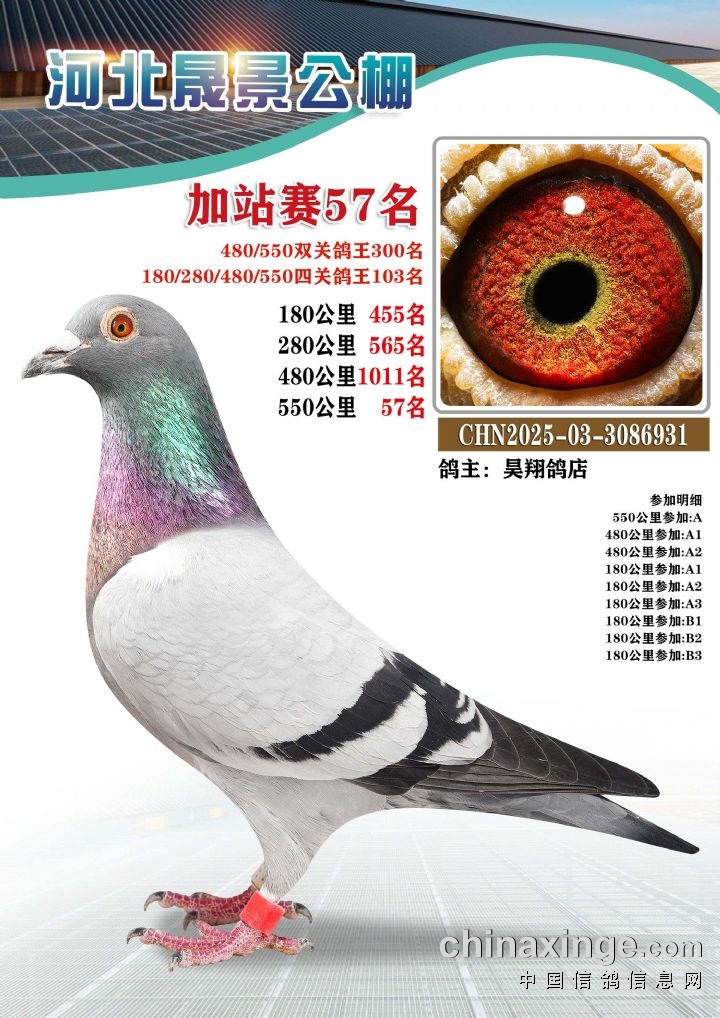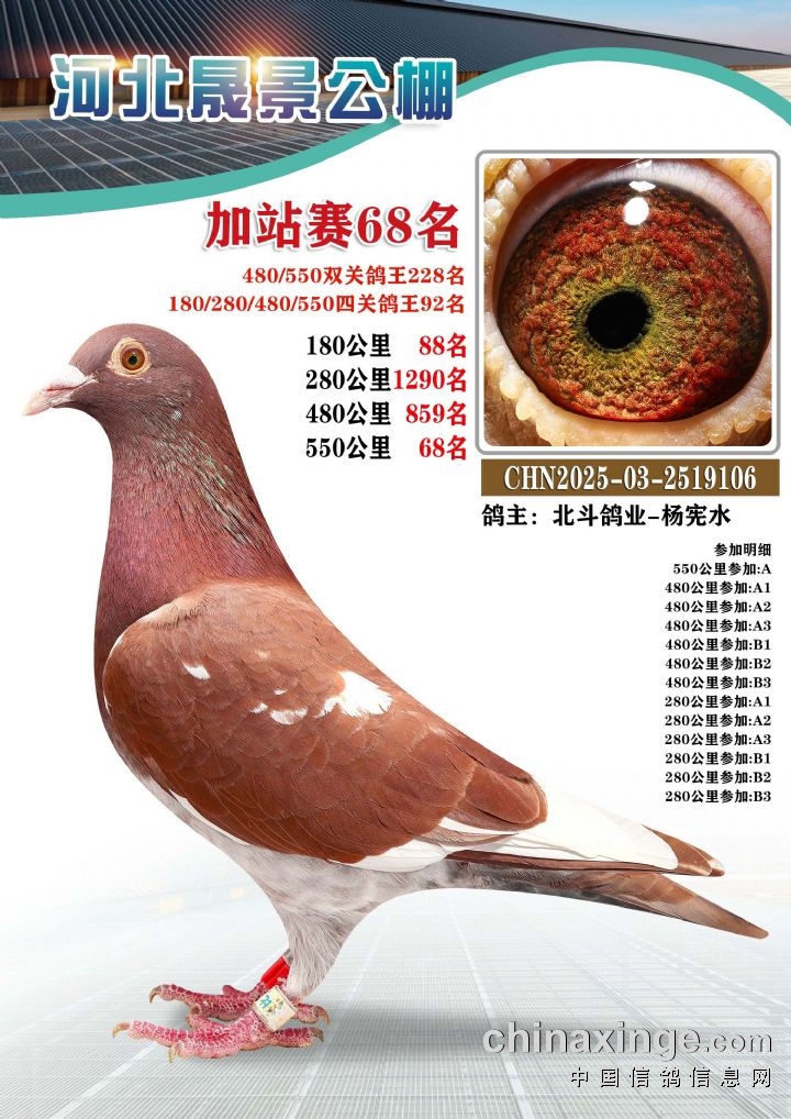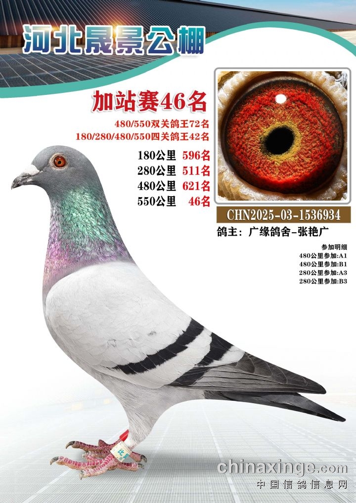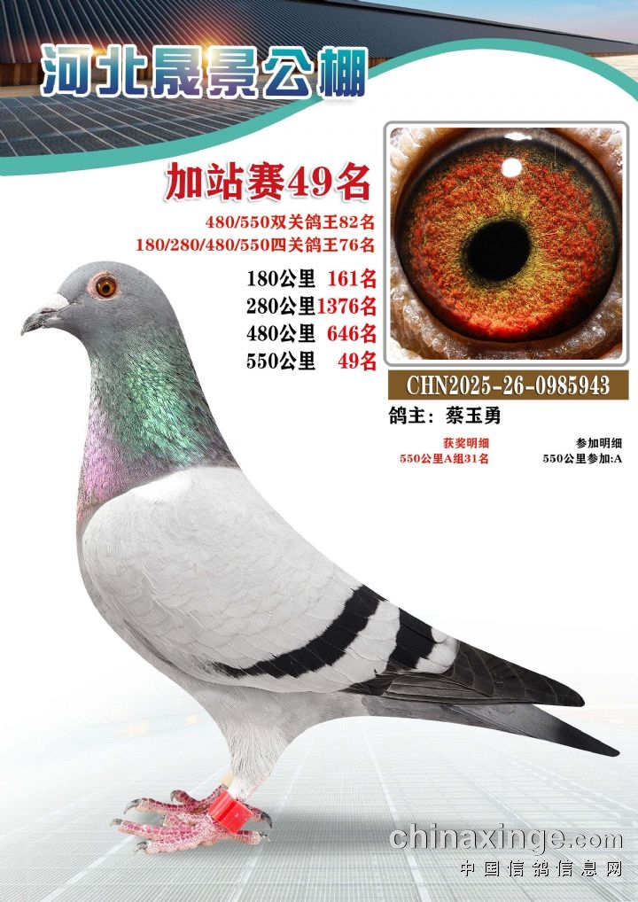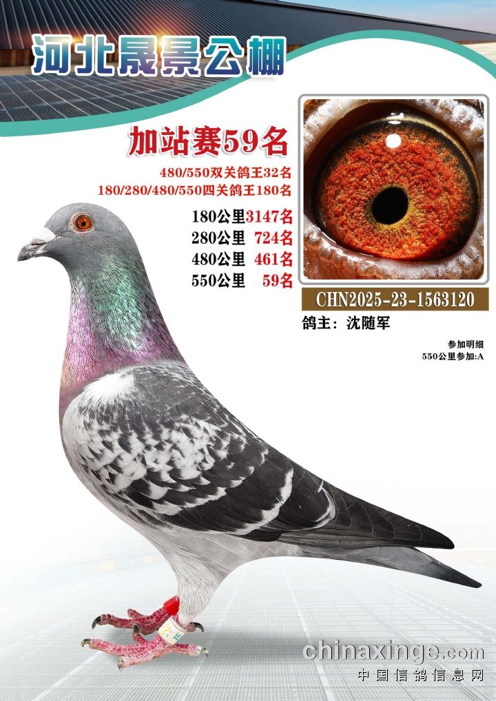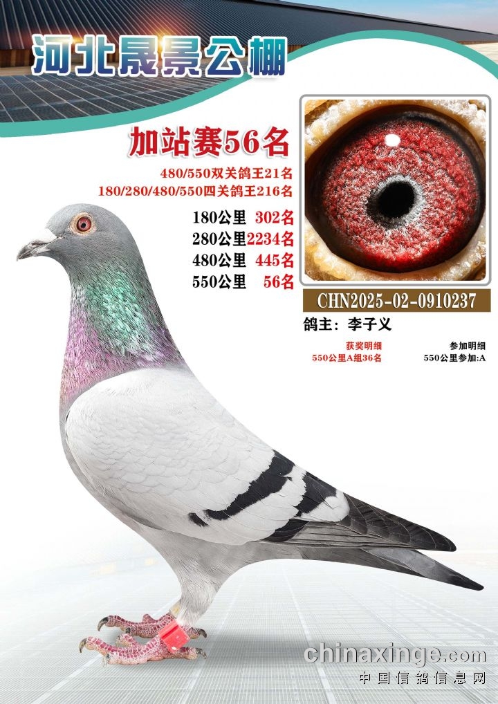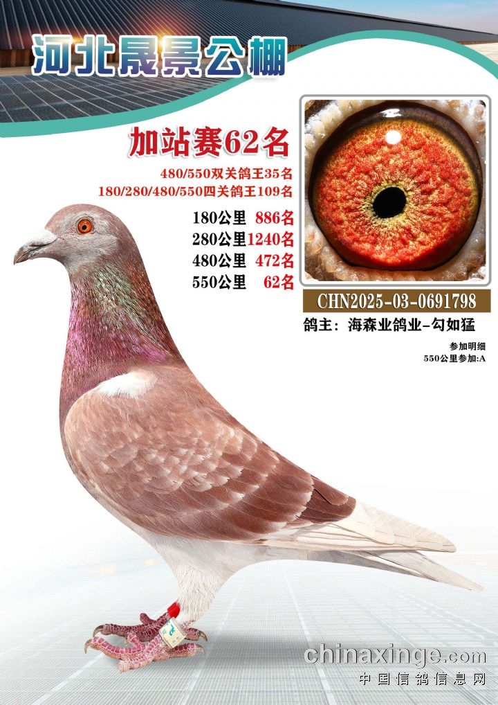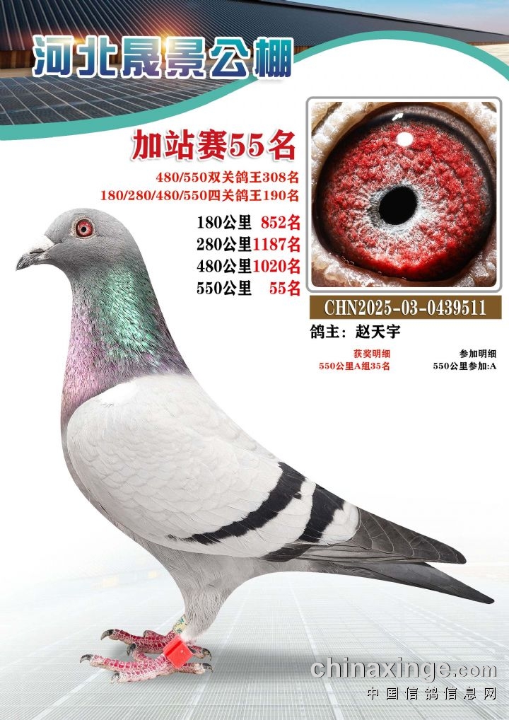 河北晟景公棚550公里加站赛获奖鸽图片鉴赏冠军-10名