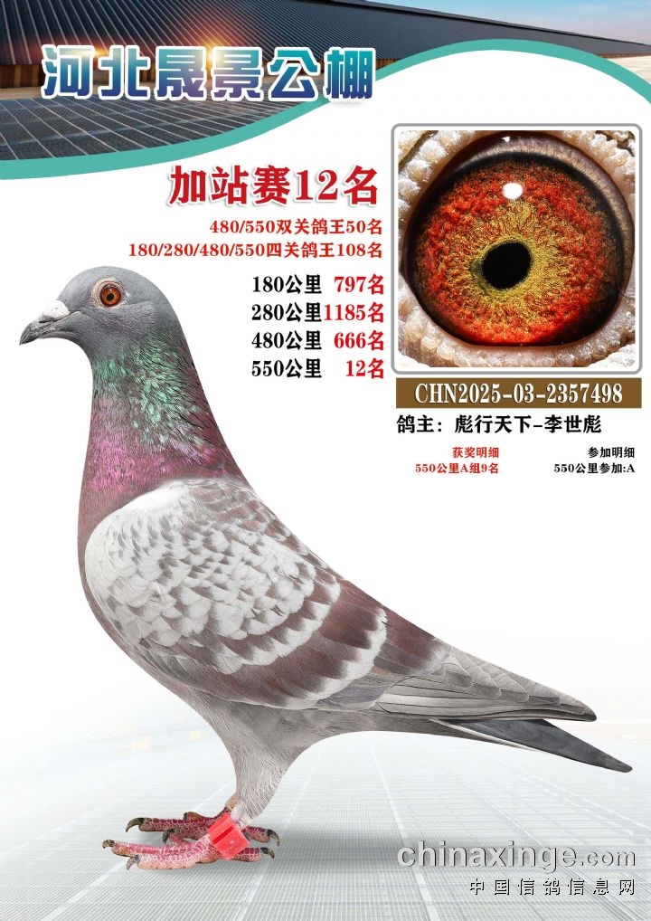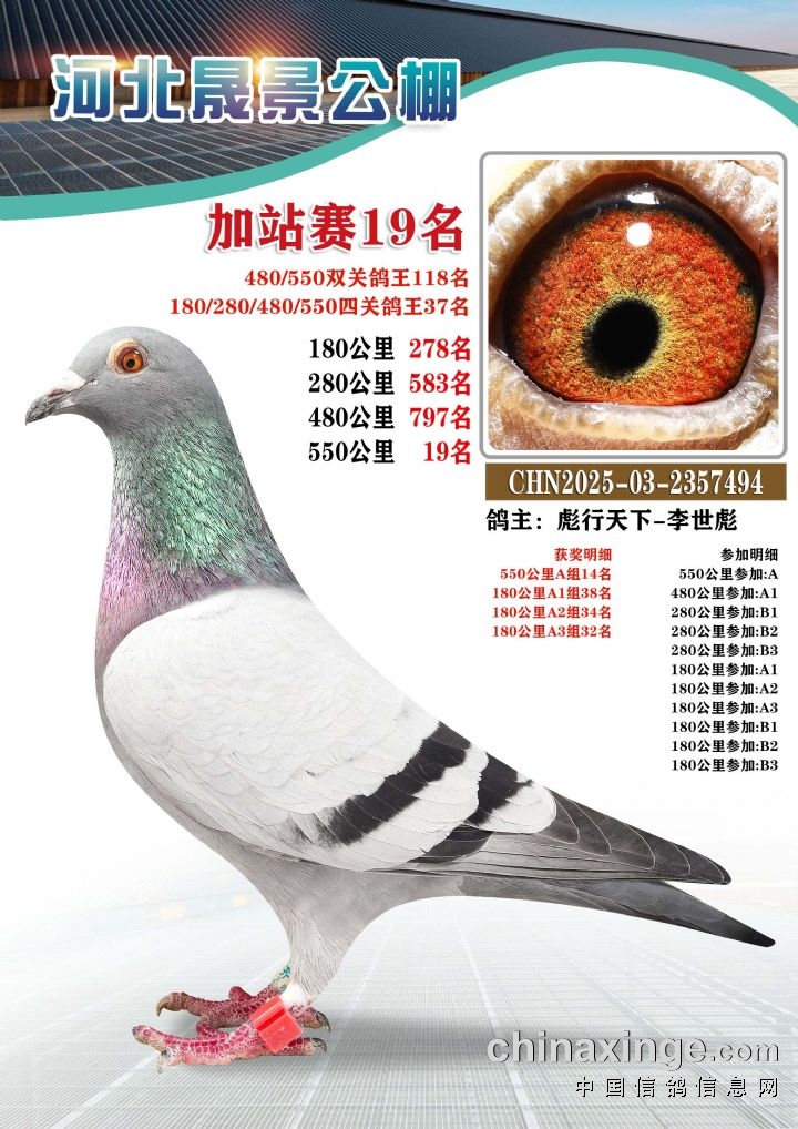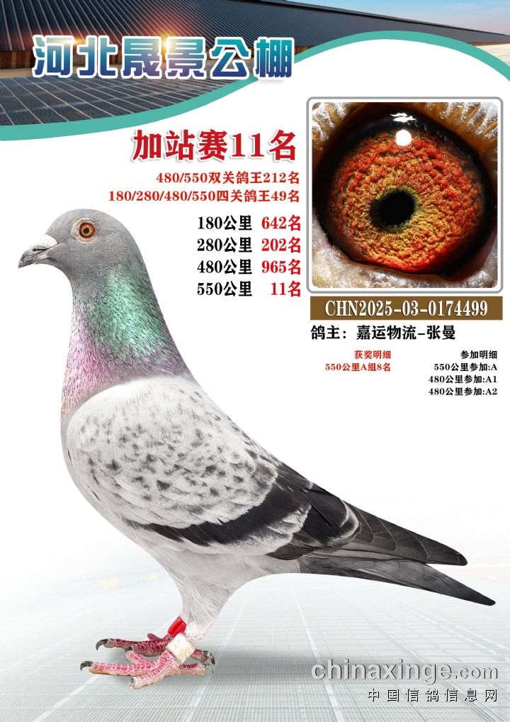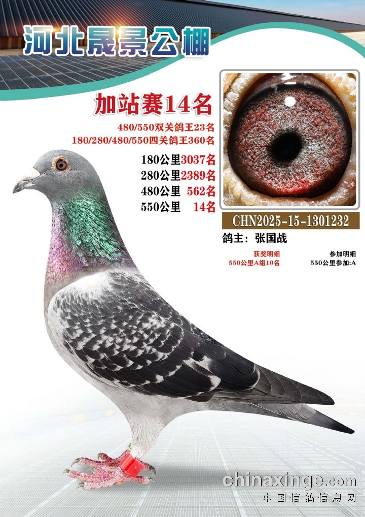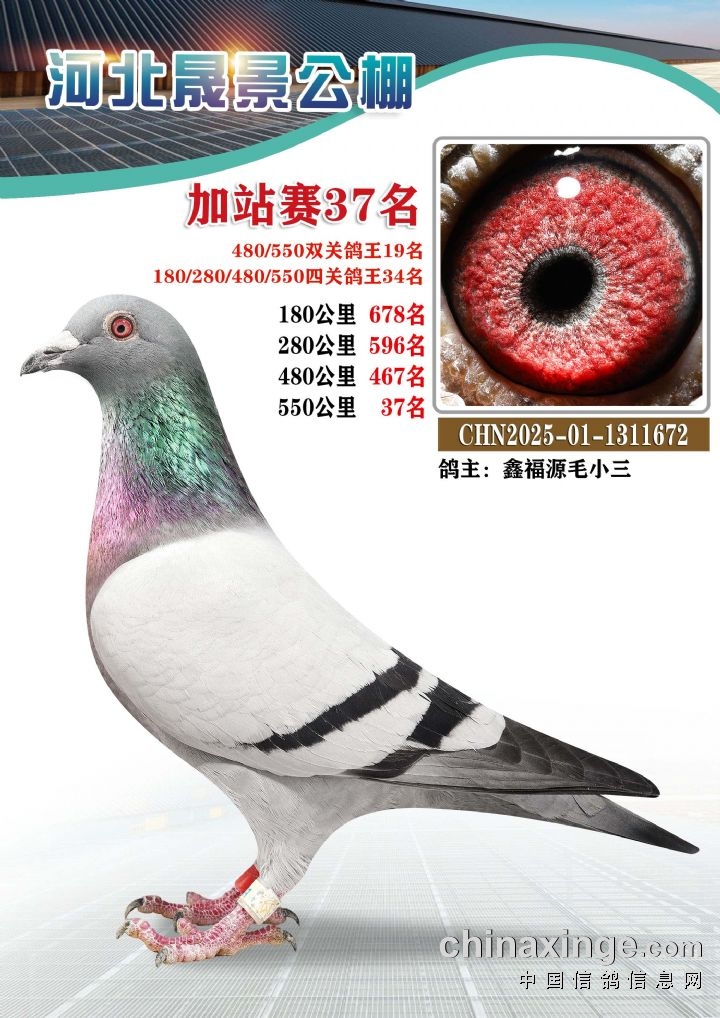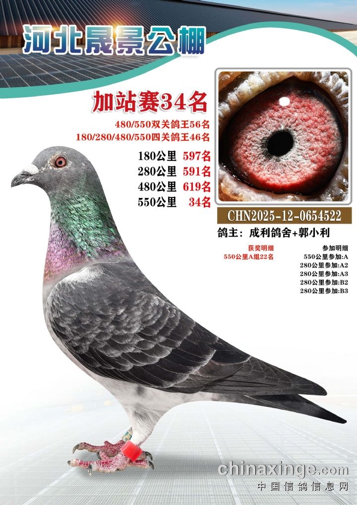 河北晟景公棚550公里加站赛获奖鸽图片鉴赏冠军-10名