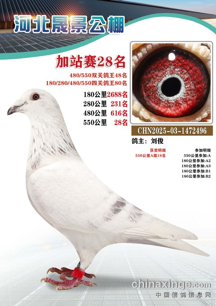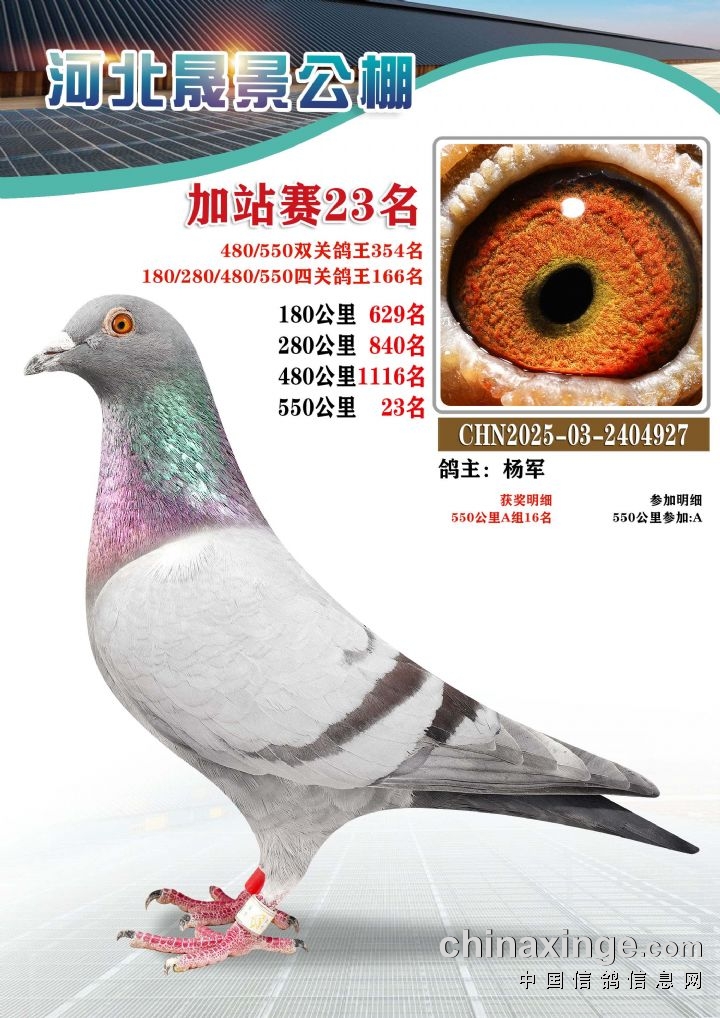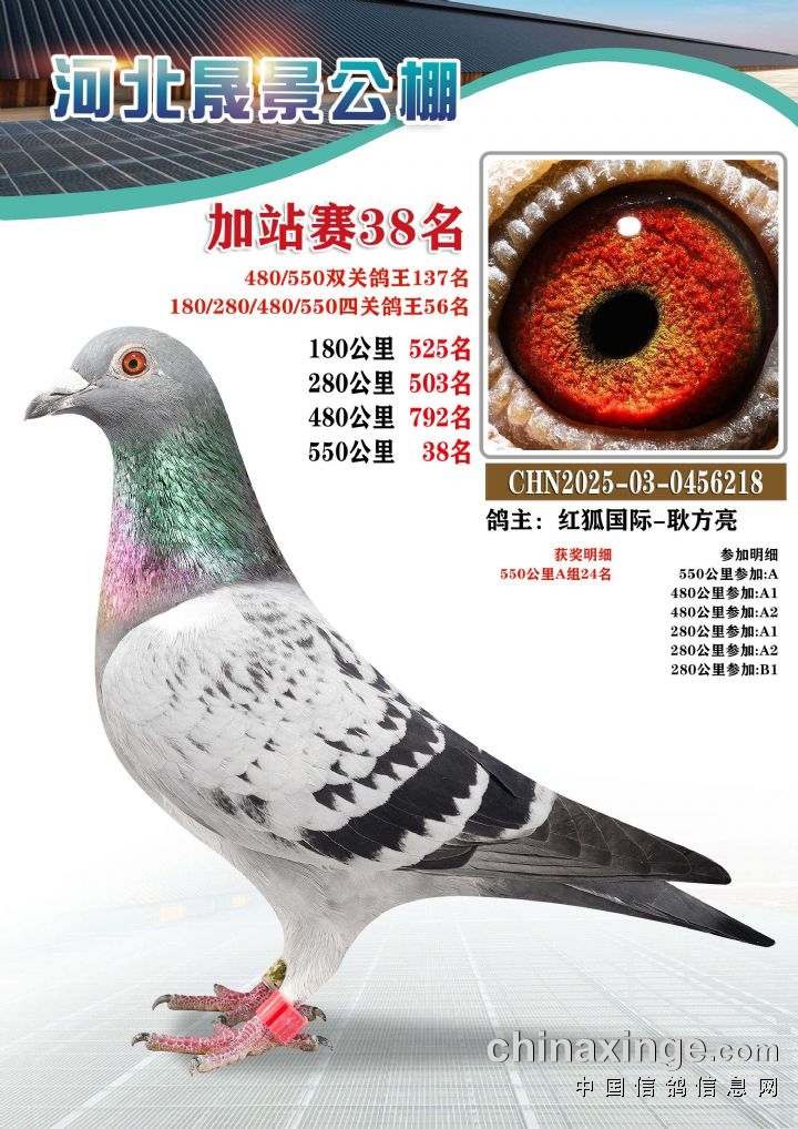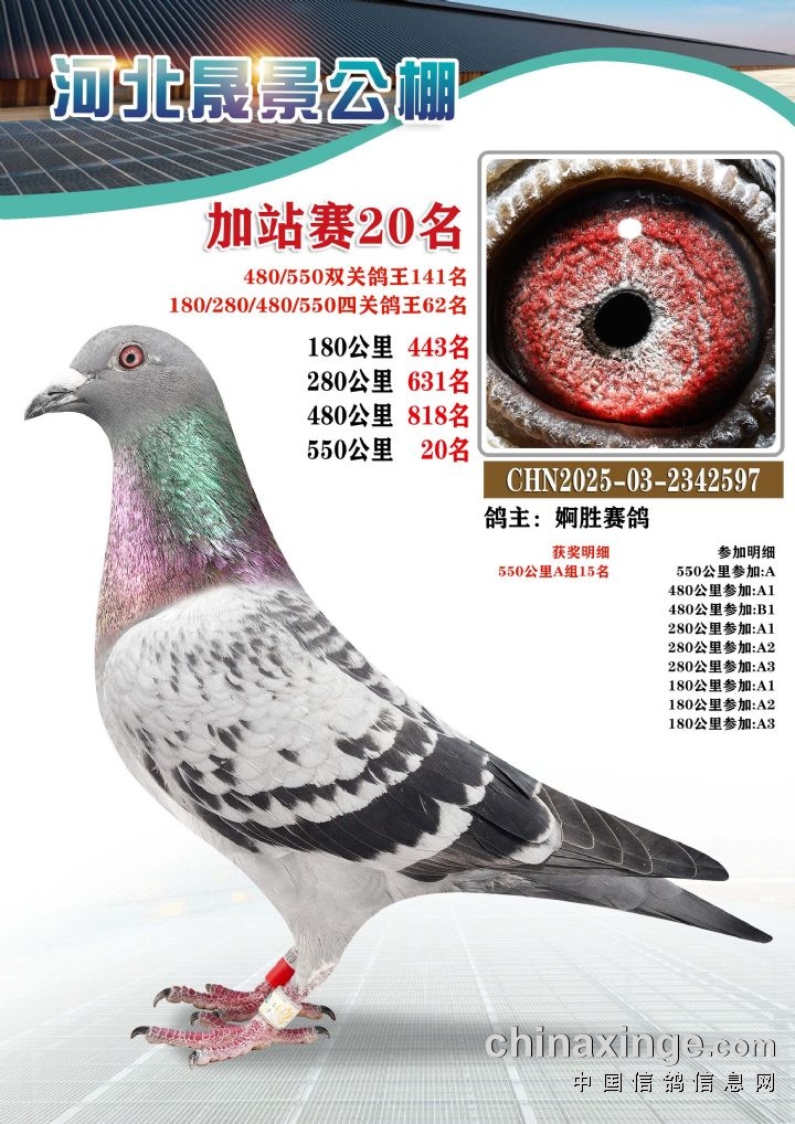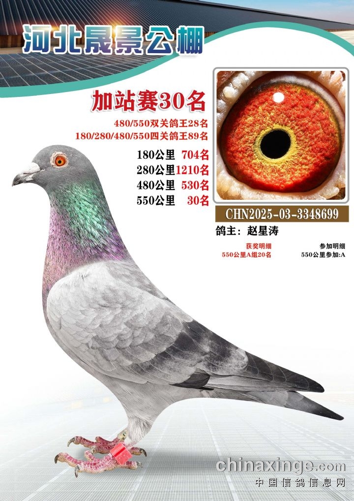 河北晟景公棚550公里加站赛获奖鸽图片鉴赏冠军-10名