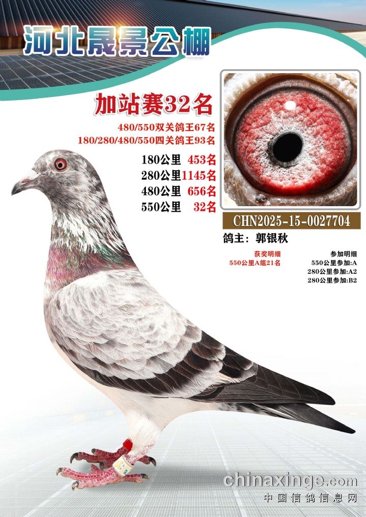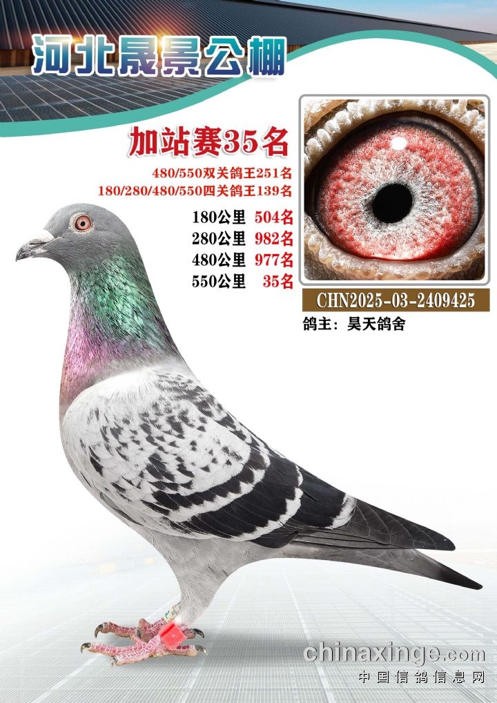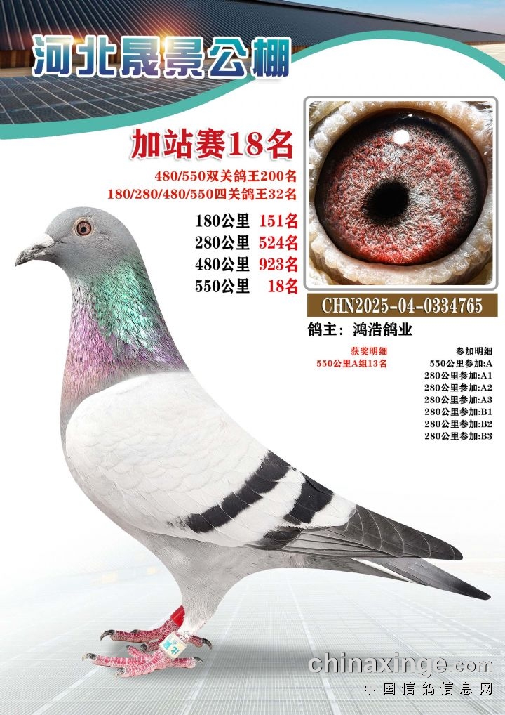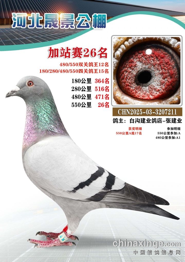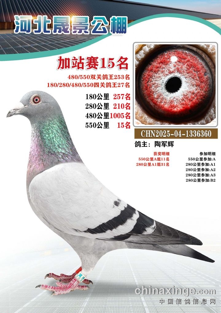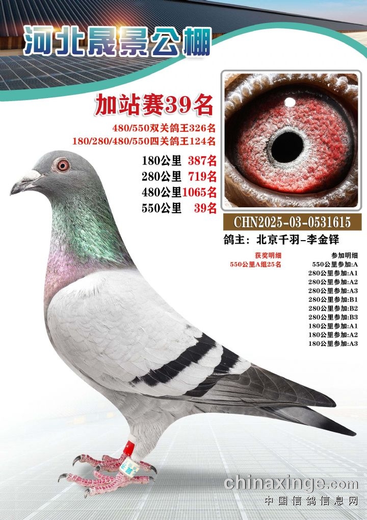 河北晟景公棚550公里加站赛获奖鸽图片鉴赏冠军-10名