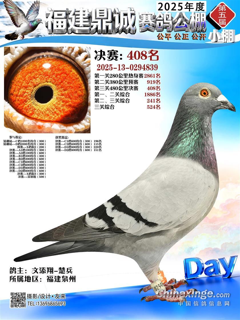 鼎诚小棚第五届获奖鸽图集赏析(301-400)