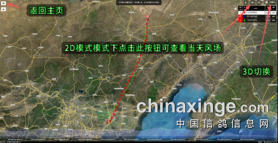 天津长江赛鸽公棚186公里热身赛归巢飞行轨迹