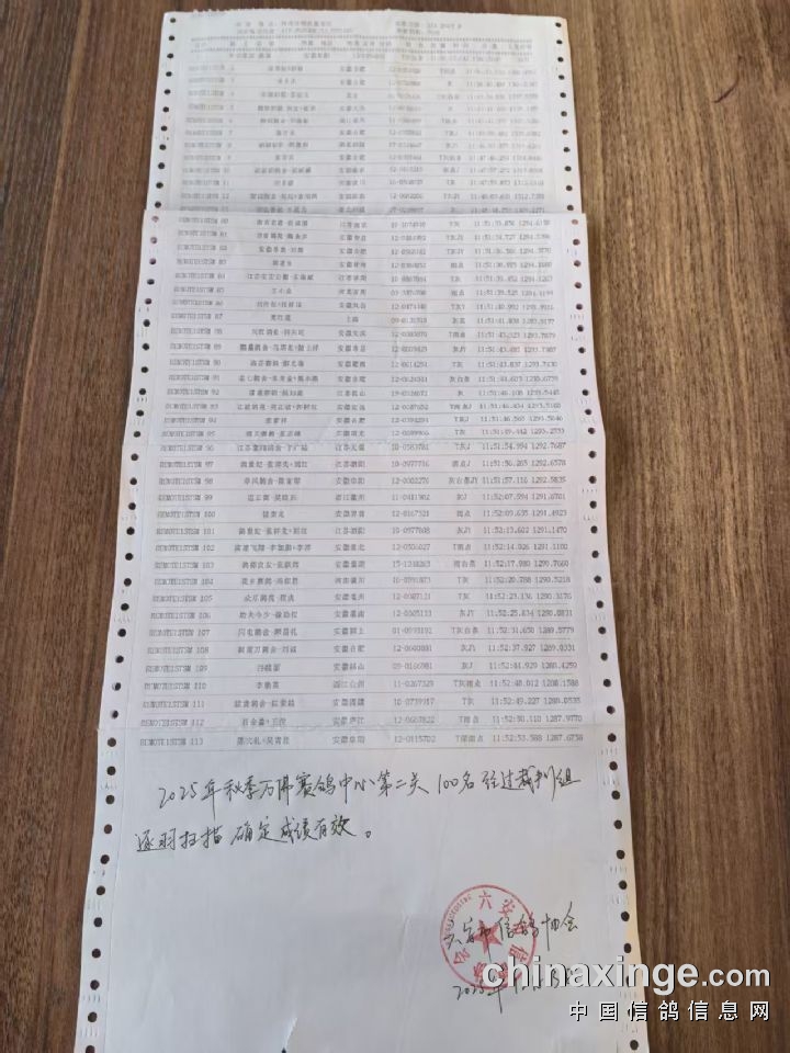 | 安徽省万佛赛鸽中心第二关获奖名单