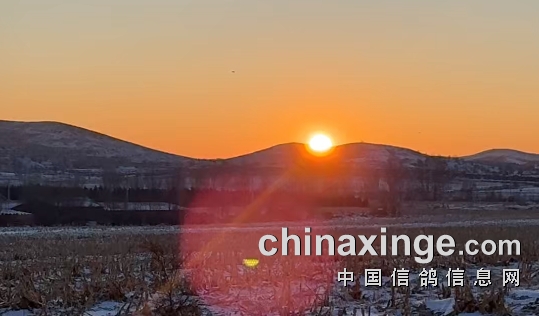 司放地天气晴,开笼地及归巢地整体风向为西北风2-3级,开笼地气温低至-20°,白雪皑皑的放飞地上空,是它们用力挥动的翅膀。属于它们的天空清澈、湛蓝,高升的太阳,指引着它们回家的方向。在严寒的鞭策之下,它们盘旋定位,找准方向后,毅然朝着归家的方向前进!