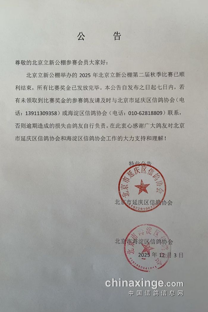 北京立新公棚2025年第二届秋季竞赛获奖鸽照片查看方式