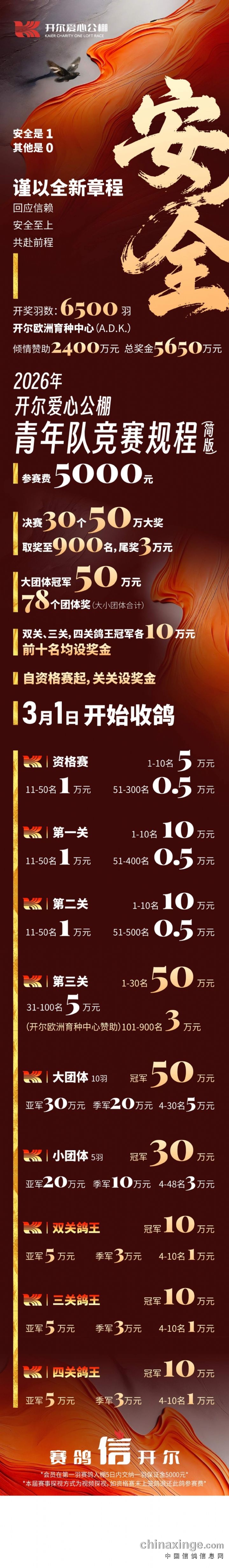 开尔国际赛鸽爱心公棚(青年队)2026年第八届秋季竞赛章程简版