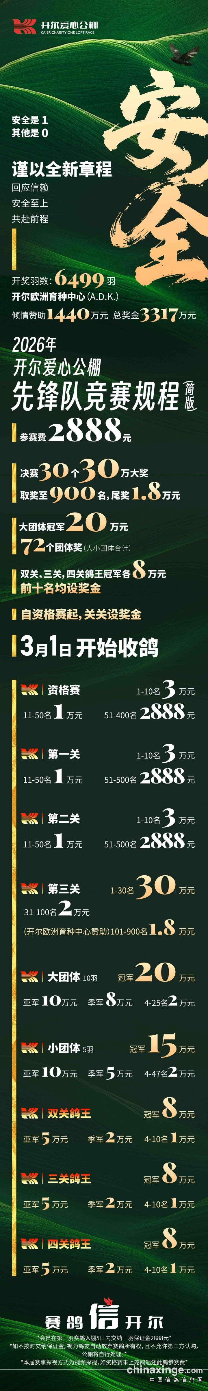 开尔国际赛鸽爱心公棚(先锋队)2026年第二届秋季竞赛章程简版