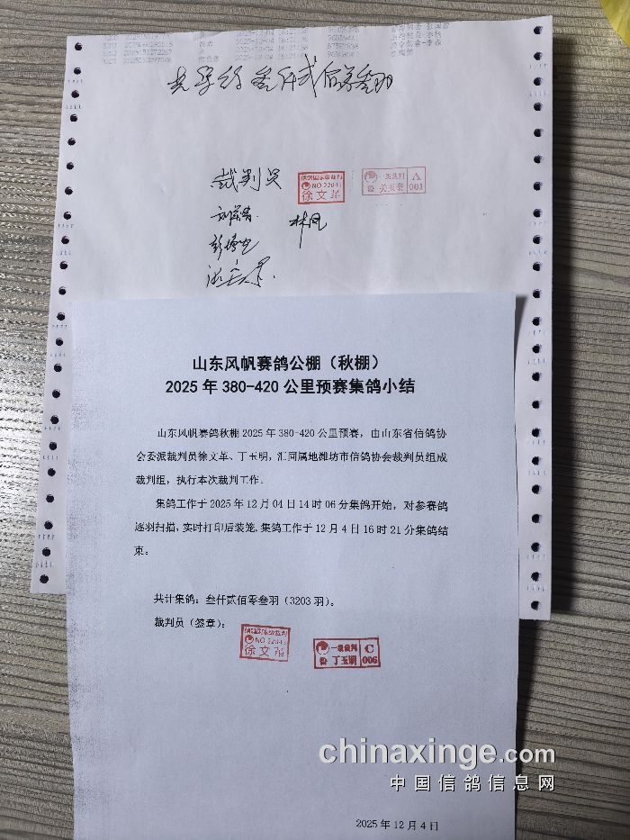 山东风帆赛鸽公棚(秋棚)2025年第二届获奖鸽照片