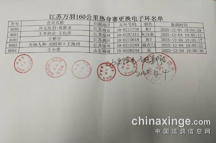 江苏万羽:2026年收鸽记录(不断更新中...)