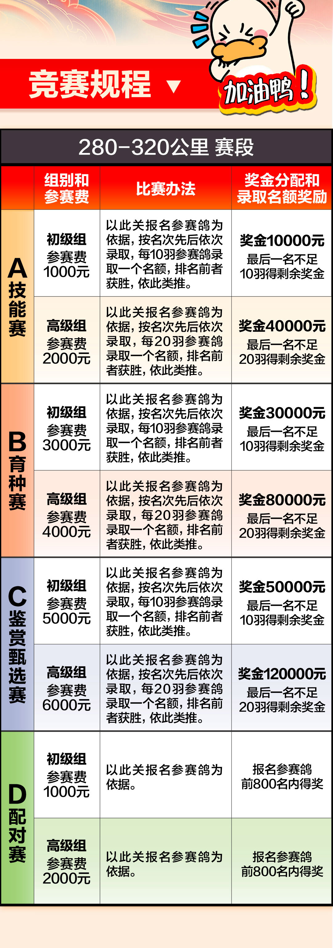 集鸽当天不接受任何报名。