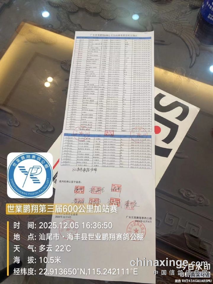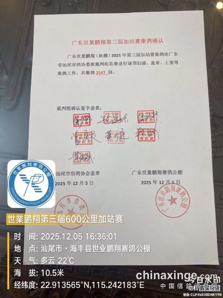 广东世業(秋棚)600公里挑战赛集鸽清单(2547羽)