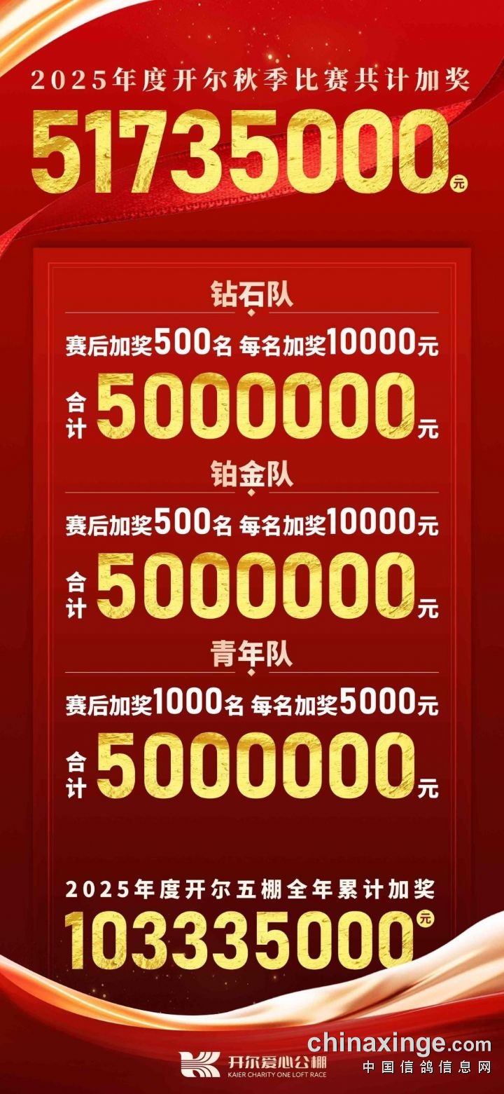 2025年12月4日开尔秋季颁奖典礼上,开尔邢总宣布:2025年秋赛再次加奖,钻石队加奖500名,每名1万元;铂金队加奖500名,每名1万元;青年队加奖1000名,每名5千元。